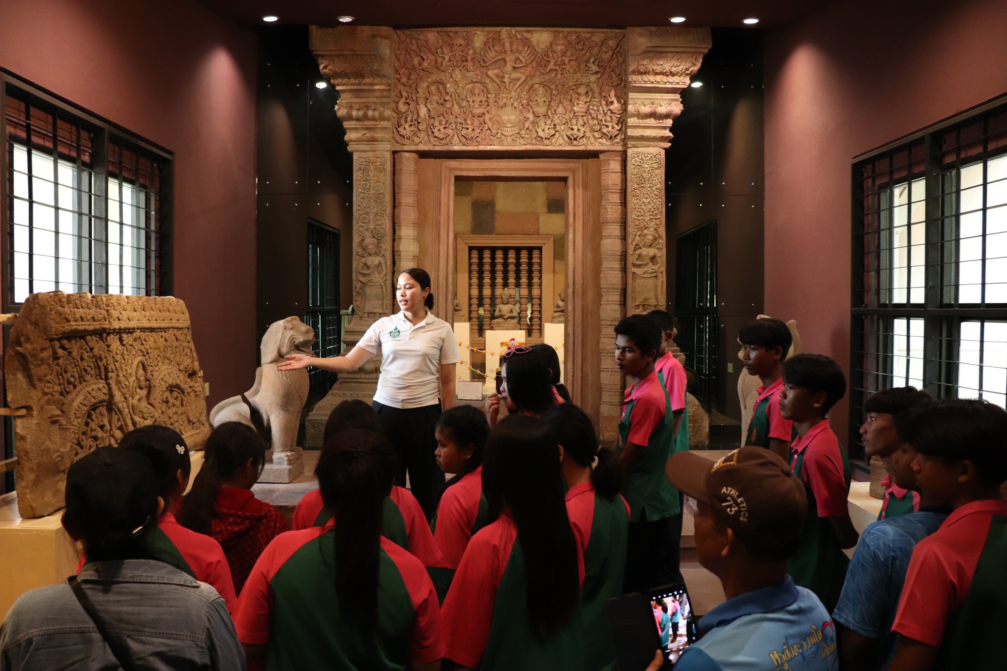วันพุธที่ ๒๖ มีนาคม พ.ศ. ๒๕๖๘ เวลา ๑๔.๐๐ น. นักเรียนชั้นประถมศึกษาปีที่ ๔-๖ โรงเรียนบ้านตาพราม ตำบลเทพรักษา อำเภอสังขะ จังหวัดสุรินทร์ จำนวน ๑๐๐ คน คุณครู ๑๕ คน เข้าเยี่ยมชมพิพิธภัณฑสถานแห่งชาติ สุรินทร์ โดยมีนพรัศม์ เมธีวราธนานันท์ ภัณฑารักษ์ปฏิบัติการ และนายธนากร วงศ์สิริพัฒนะ นักวิชาการวัฒนธรรม ให้การต้อนรับและบรรยายนำชม