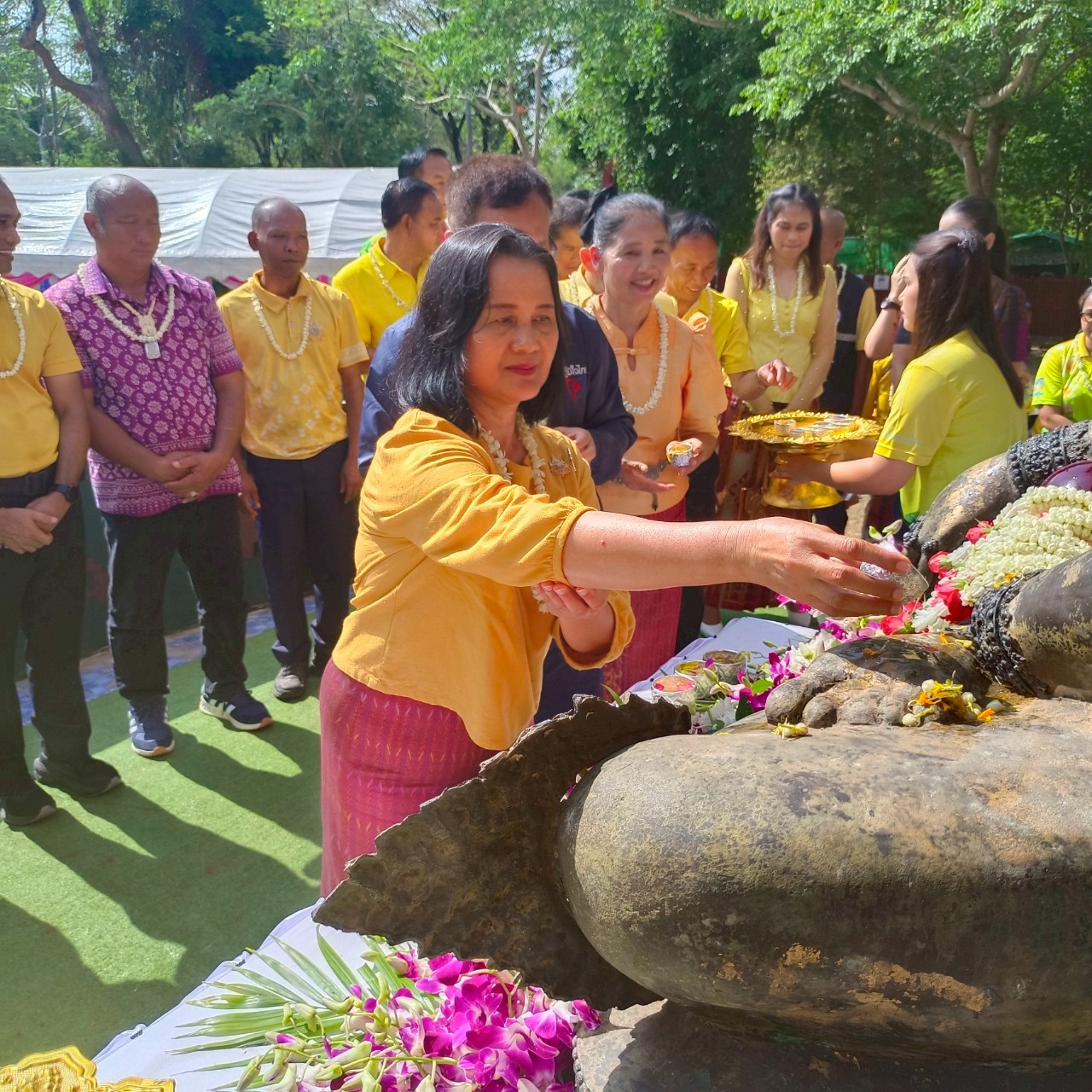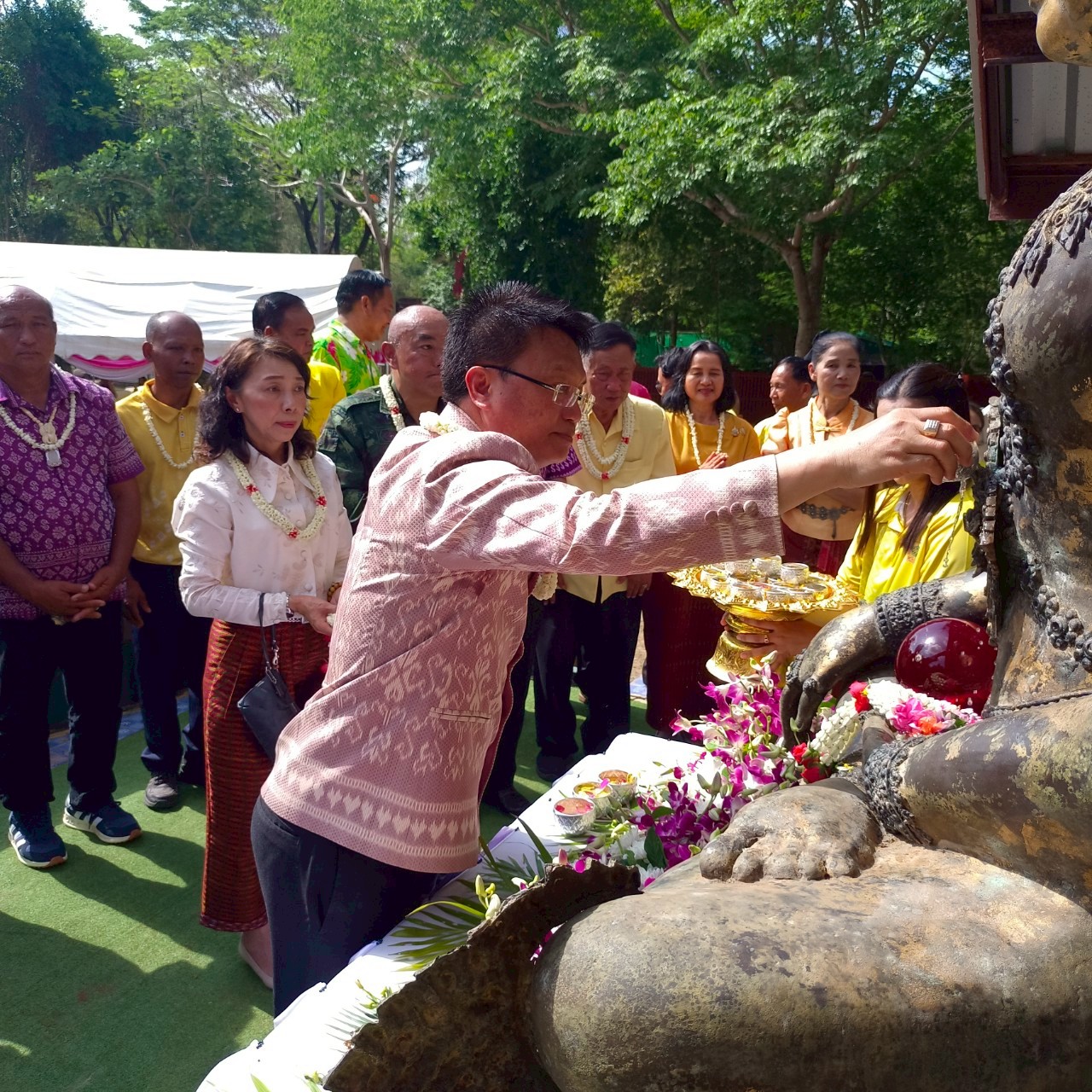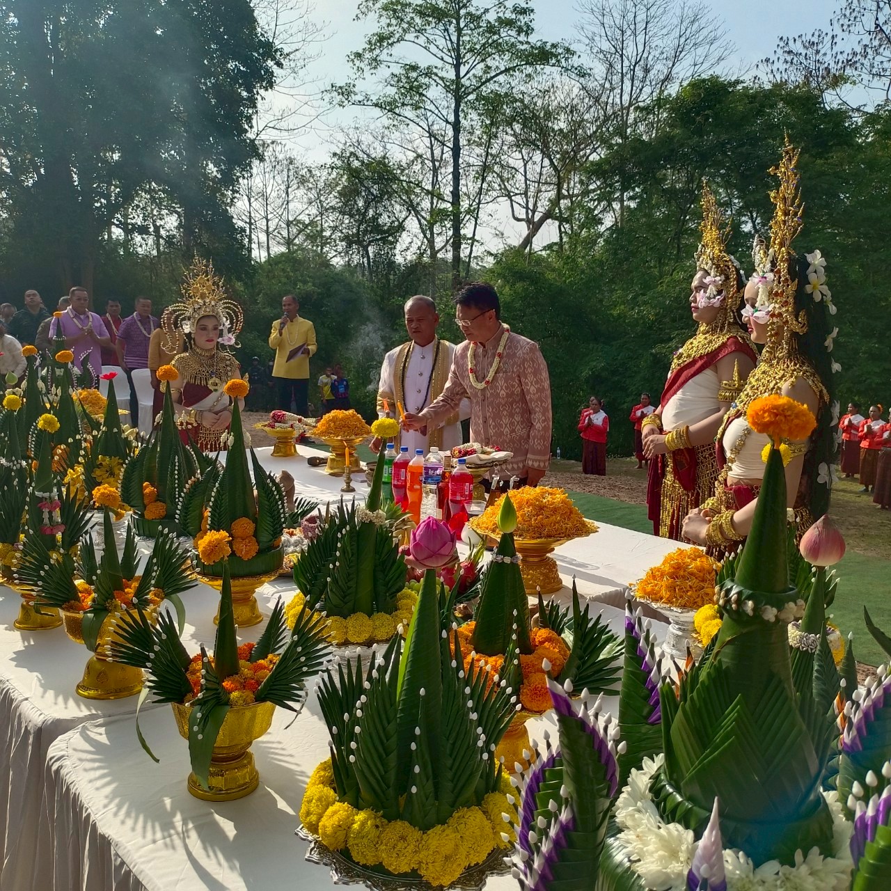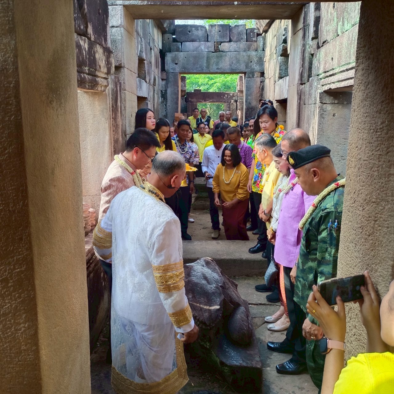 วันเสาร์ที่ ๑๒ เมษายน ๒๕๖๘ เวลา ๐๗.๐๐ น. นางปริญญา สุขใหญ่ หัวหน้าพิพิธภัณฑสถานแห่งชาติ สุรินทร์ และนายกรภัทร์ สุขใหญ่ พนักงานประจำพิพิธภัณฑ์ ร่วมพิธีบวงสรวงสิ่งศักดิ์สิทธิ์องค์ปราสาทตาเมือนธม มีนายประภาส ศรีจันทร์เวียง รองผู้ว่าราชการจังหวัดสุรินทร์ ประธานในพิธี พร้อมหัวหน้าส่วนราชการ และประชาชนเข้าร่วมงาน