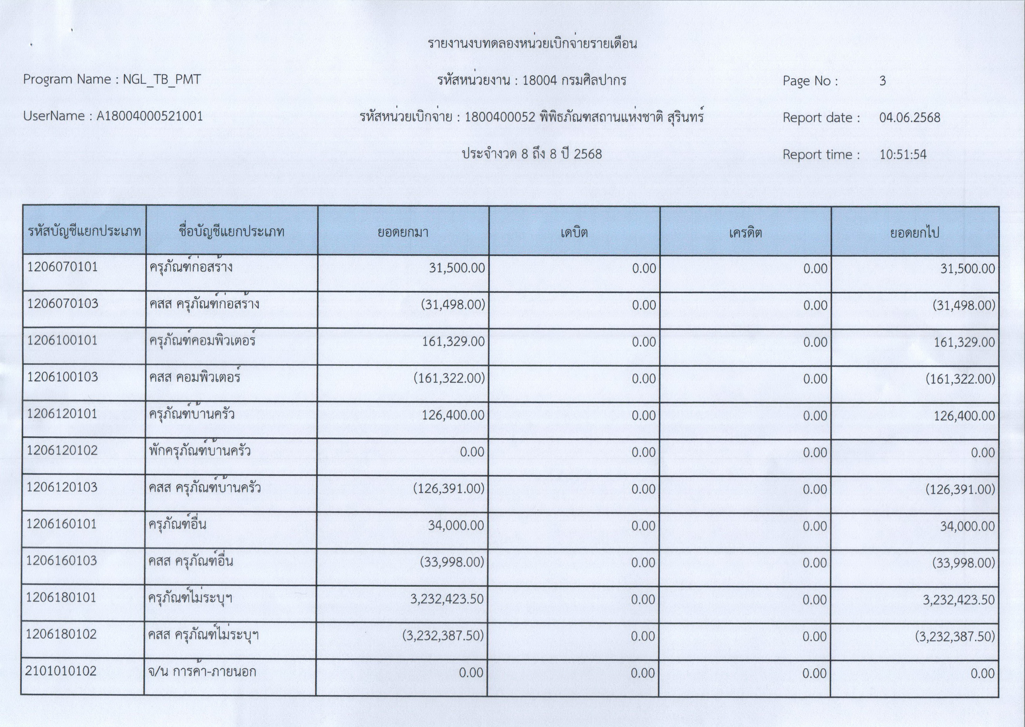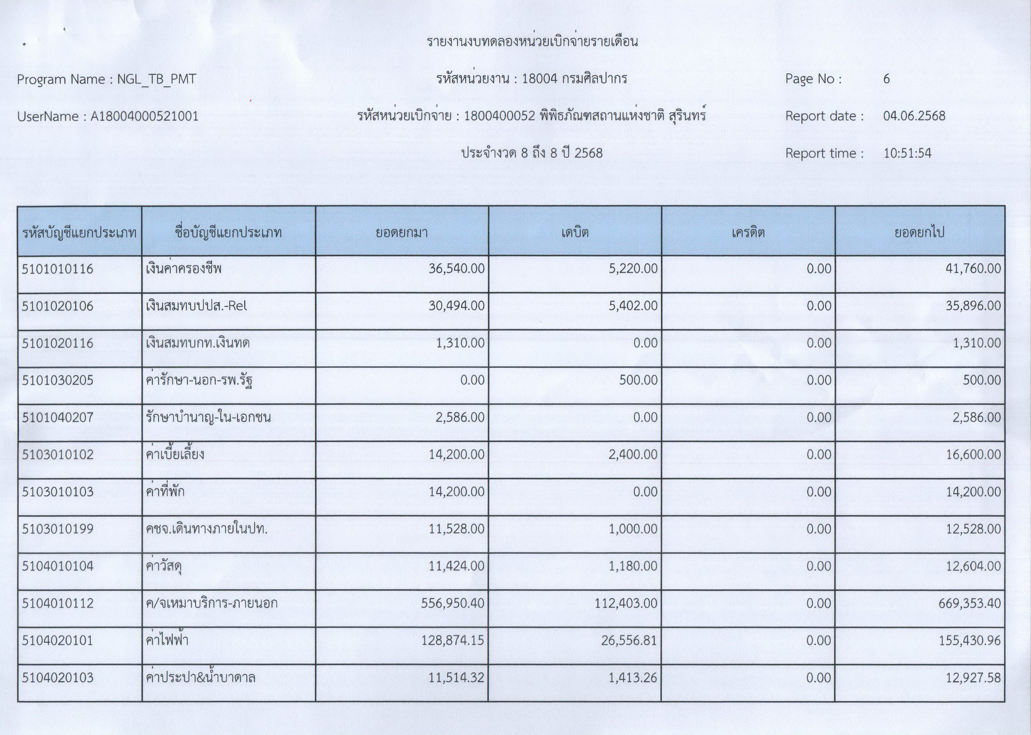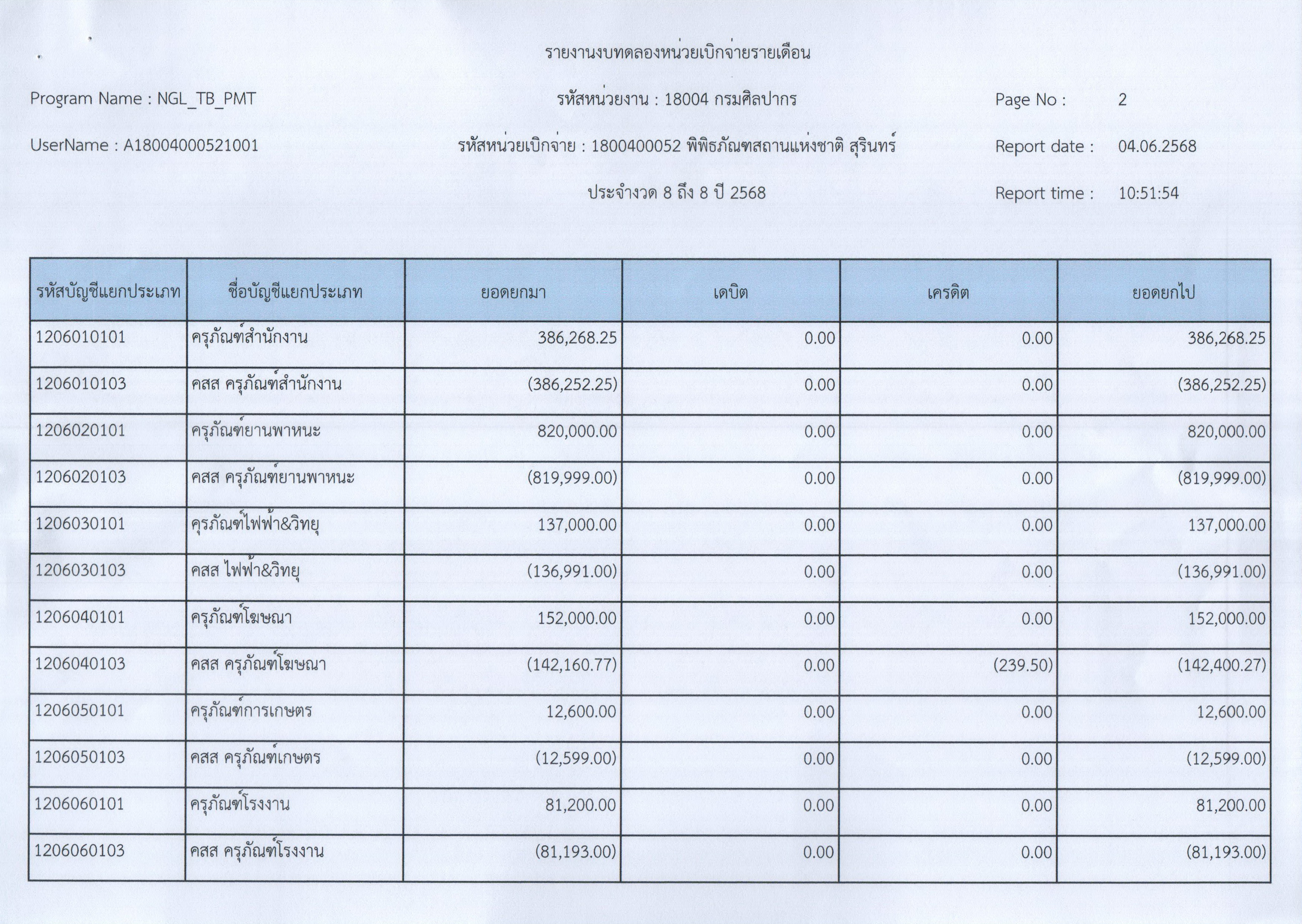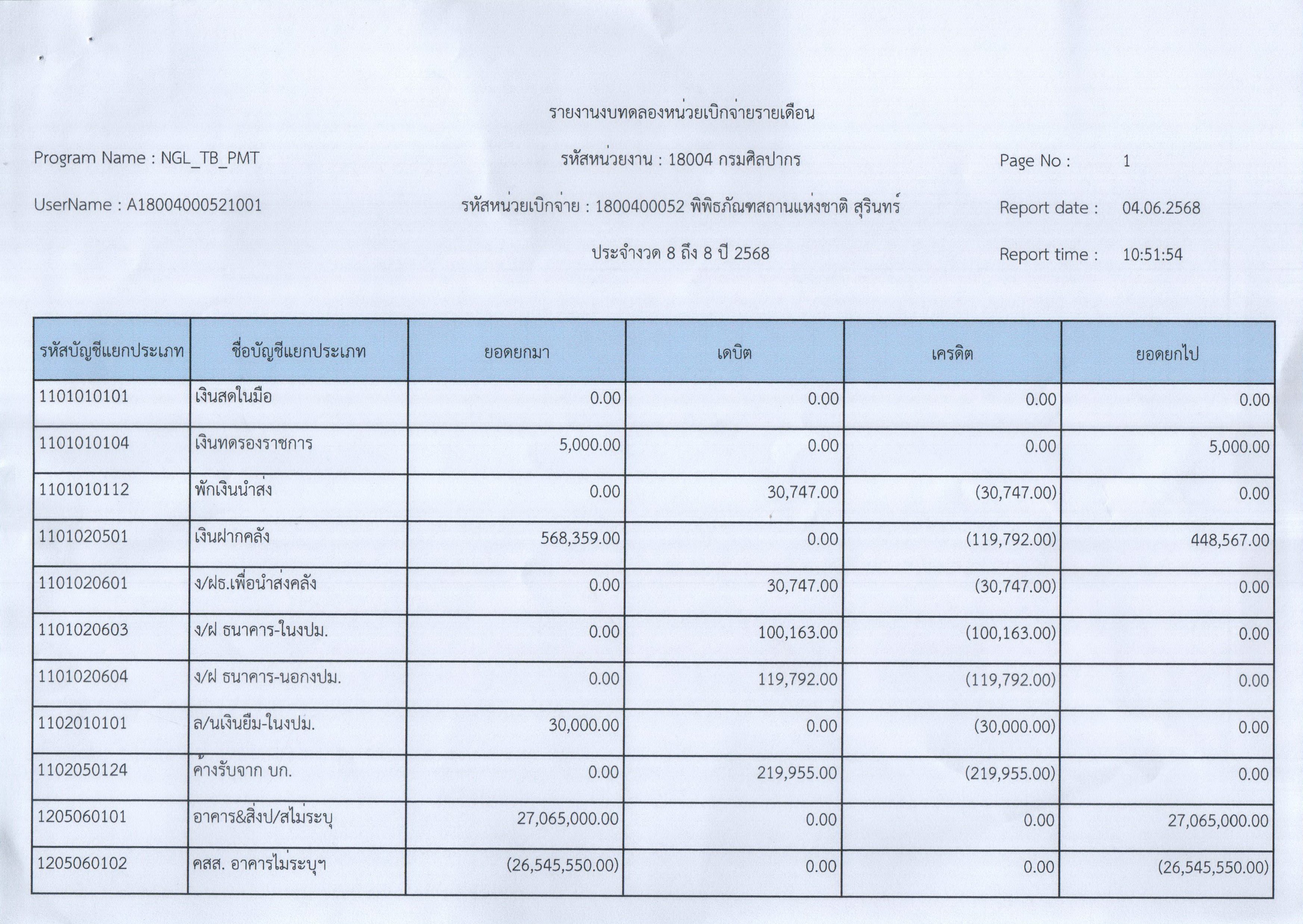 รายงานงบทดลองหน่วยเบิกจ่ายรายเดือนพฤษภาคม ๒๕๖๘