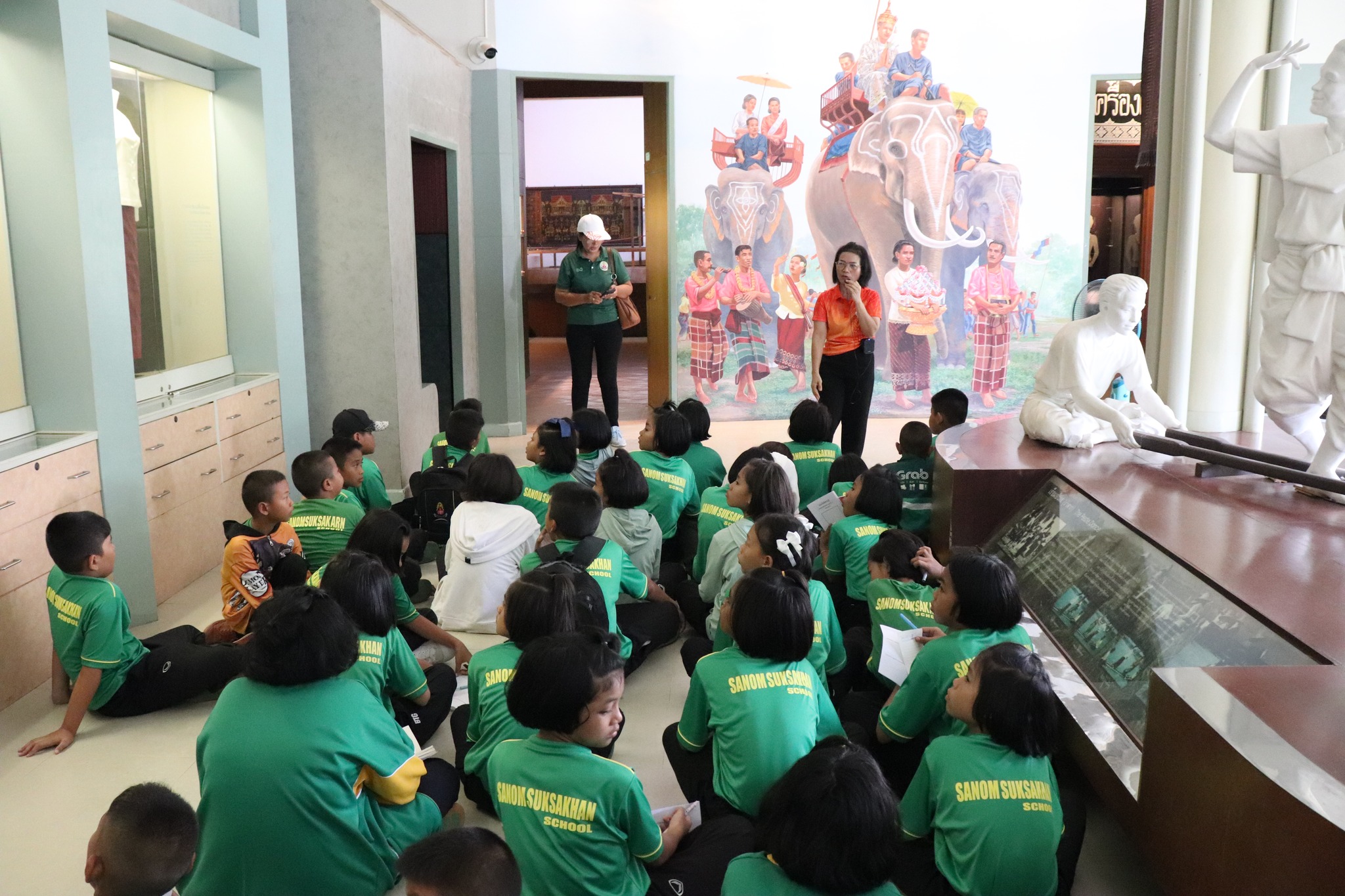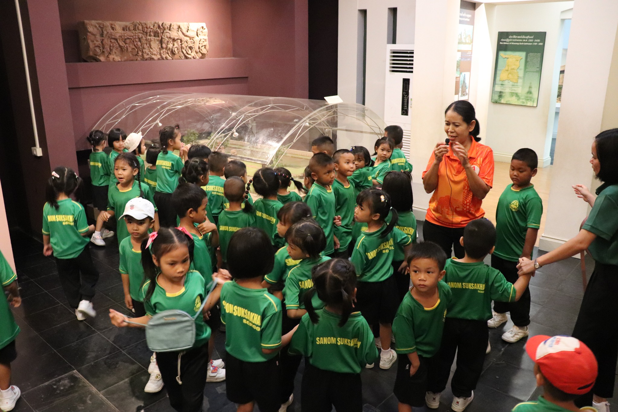 วันพุธที่ ๒๕ มิถุนายน พ.ศ. ๒๕๖๘ เวลา ๐๙.๓๐ น. นักเรียนชั้นอนุบาล ๑ ถึงชั้นประถมศึกษาปีที่ ๖ โรงเรียนสนมศึกษาคาร ตำบลสนม อำเภอสนม จังหวัดสุรินทร์ จำนวน ๓๕๐ คน คุณครู ๒๒ คน เข้าเยี่ยมชมพิพิธภัณฑสถานแห่งชาติ สุรินทร์ โดยมีนายนพรัศม์ เมธีวราธนานันท์ ภัณฑารักษ์ปฏิบัติการ และพนักงานประจำพิพิธภัณฑ์ทุกคน ให้การต้อนรับและบรรยายนำชม