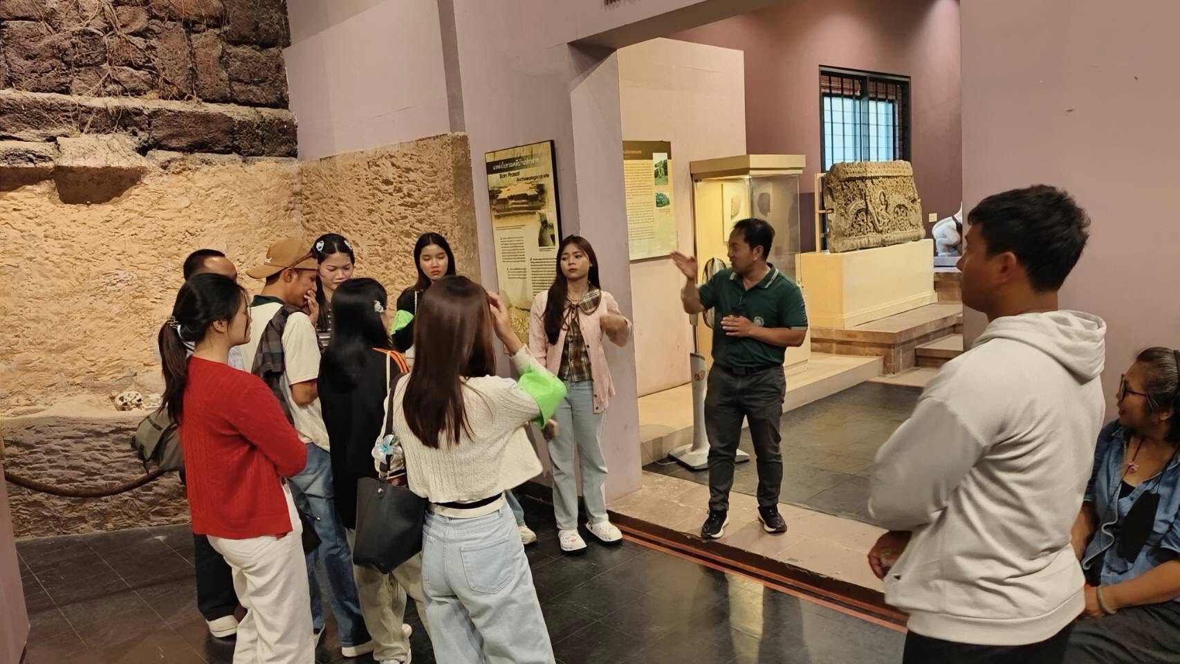 วันเสาร์ที่ ๑๙ กรกฎาคม พ.ศ.๒๕๖๘ ๑๔.๐๐ น. นักศึกษาชั้นปีที่ ๒ และ ๔ วิทยาลัยการท่องเที่ยวและอุตสาหกรรมบริการ มหาวิทยาลัยนครพนม ตำบลขามเฒ่า อำเภอเมือง จังหวัดนครพนม จำนวน ๑๐ คน อาจารย์ ๑ คน เข้าเยี่ยมชมพิพิธภัณฑสถานแห่งชาติ สุรินทร์ โดยมีนายกรภัทร์ สุขใหญ่ พนักงานประจำพิพิธภัณฑ์ ให้การต้อนรับและบรรยายนำชม