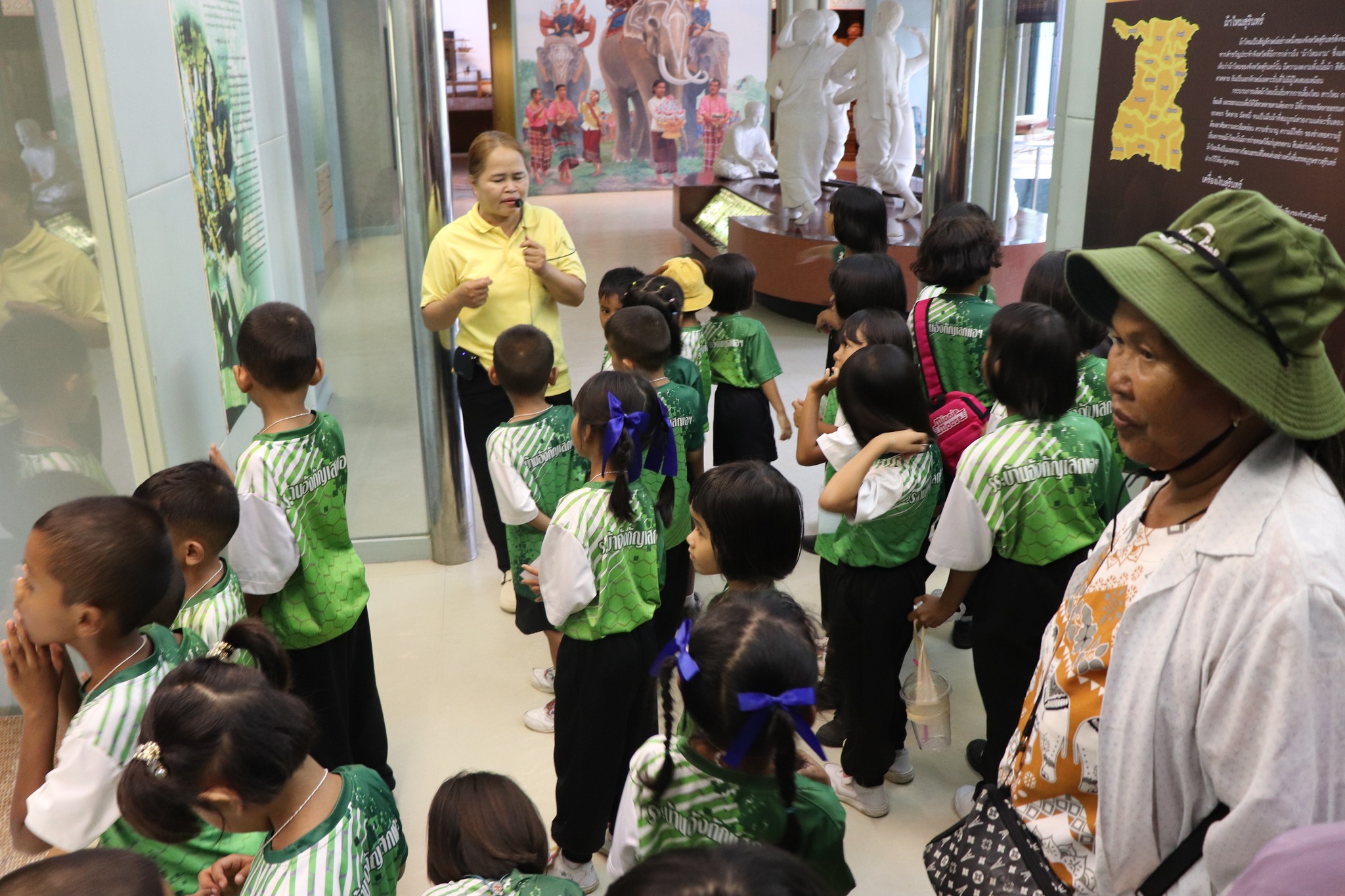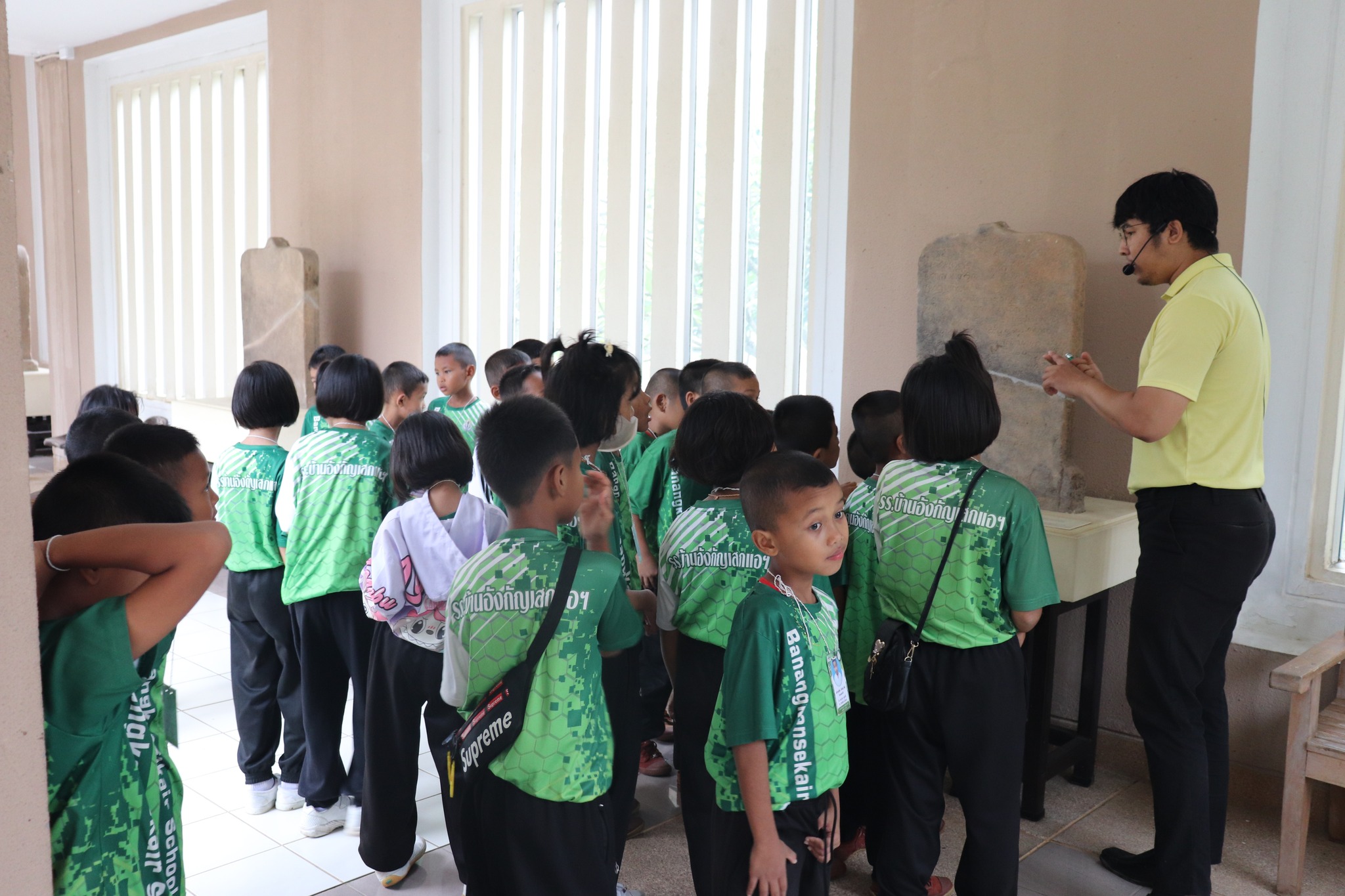 วันศุกร์ที่ ๕ กันยายน พ.ศ.๒๕๖๘ เวลา ๑๔.๓๐ น. นักเรียนชั้นอนุบาล ๒ ถึงชั้นประถมศึกษาปีที่ ๓ โรงเรียนบ้านอังกัญเสกแอ(ประดิษฐ์ราษฎร์สามัคคี) ตำบลตาอ็อง อำเภอเมือง จังหวัดสุรินทร์ จำนวน ๗๗ คน คุณครูและผู้ปกครอง ๒๙ คน เข้าเยี่ยมชมพิพิธภัณฑสถานแห่งชาติ สุรินทร์ โดยมีนายธนากร วงศ์สิริพัฒนะ นักวิชาการวัฒนธรรม นางศรีสุดา ศรีสด พนักงานประจำพิพิธภัณฑ์ ให้การต้อนรับและบรรยายนำชม