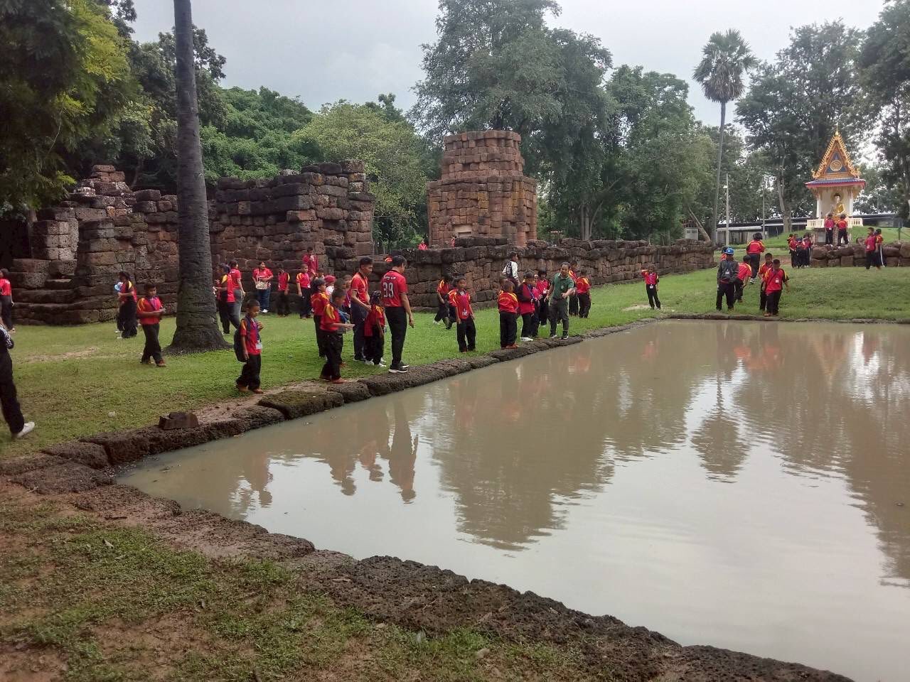 คนเข้าเยี่ยมชมโบราณสถานปราสาทจอมพระ อำเภอจอมพระ จังหวัดสุรินทร์ โดยมีนายกรภัทร์ สุขใหญ่ พนักงานประจำพิพิธภัณฑ์ ให้การต้อนรับและบรรยายนำชม