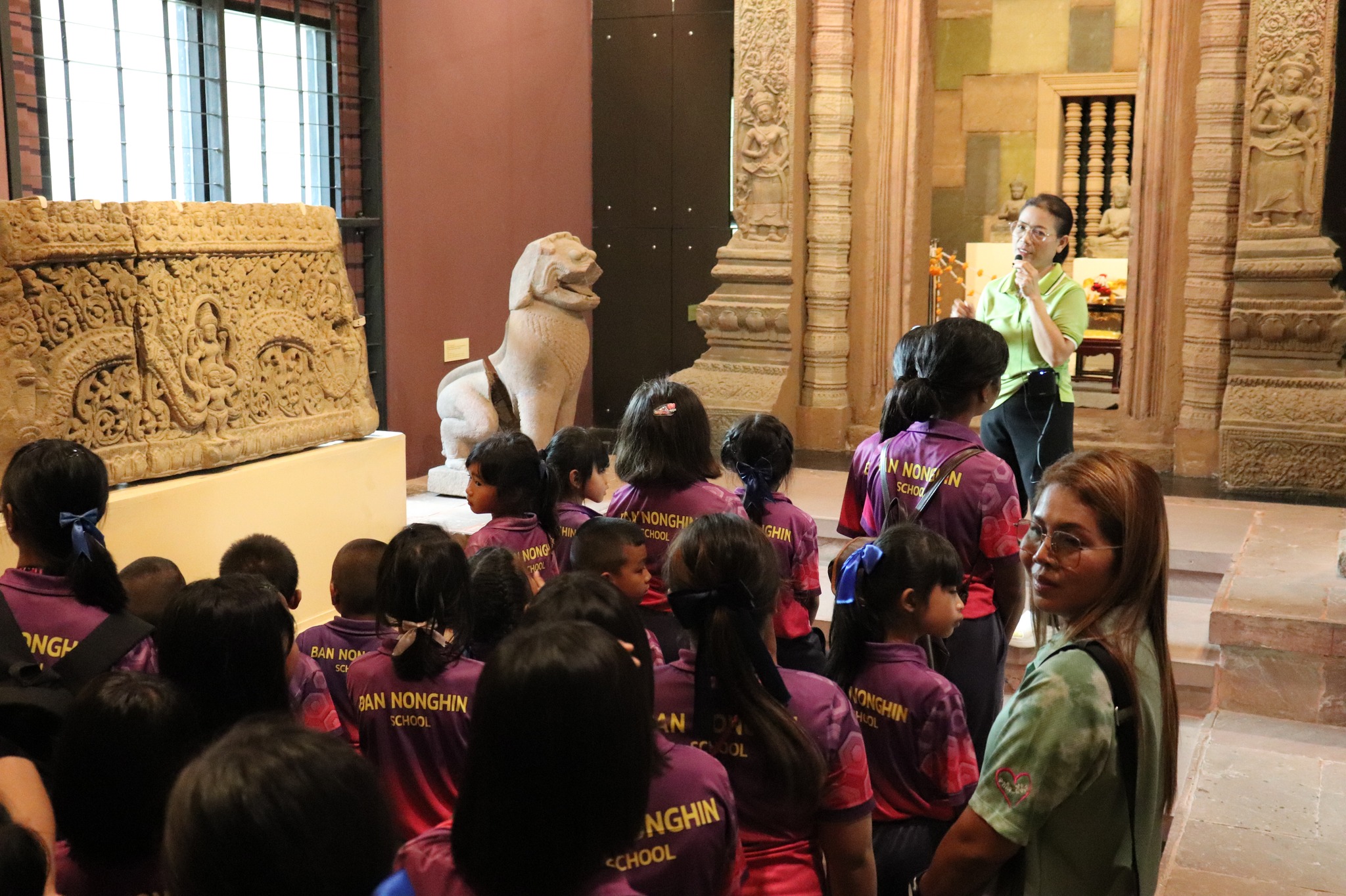 วันศุกร์ที่ ๑๒ กันยายน พ.ศ.๒๕๖๘ เวลา ๐๙.๐๐ น. นักเรียนอนุบาล ๒ ถึงชั้นประถมศึกษาปีที่ ๖ จากโรงเรียนบ้านหนองหิน ตำบลตรึม อำเภอศีขรภูมิ จังหวัดสุรินทร์ จำนวน ๖๐ คน คุณครู ๑๓ คน เข้าเยี่ยมชมพิพิธภัณฑสถานแห่งชาติ สุรินทร์ โดยมีนางสาวอภิญญา สุขใหญ่ นางศรีสุดา ศรีสด พนักงานประจำพิพิธภัณฑ์ ให้การต้อนรับและบรรยายนำชม