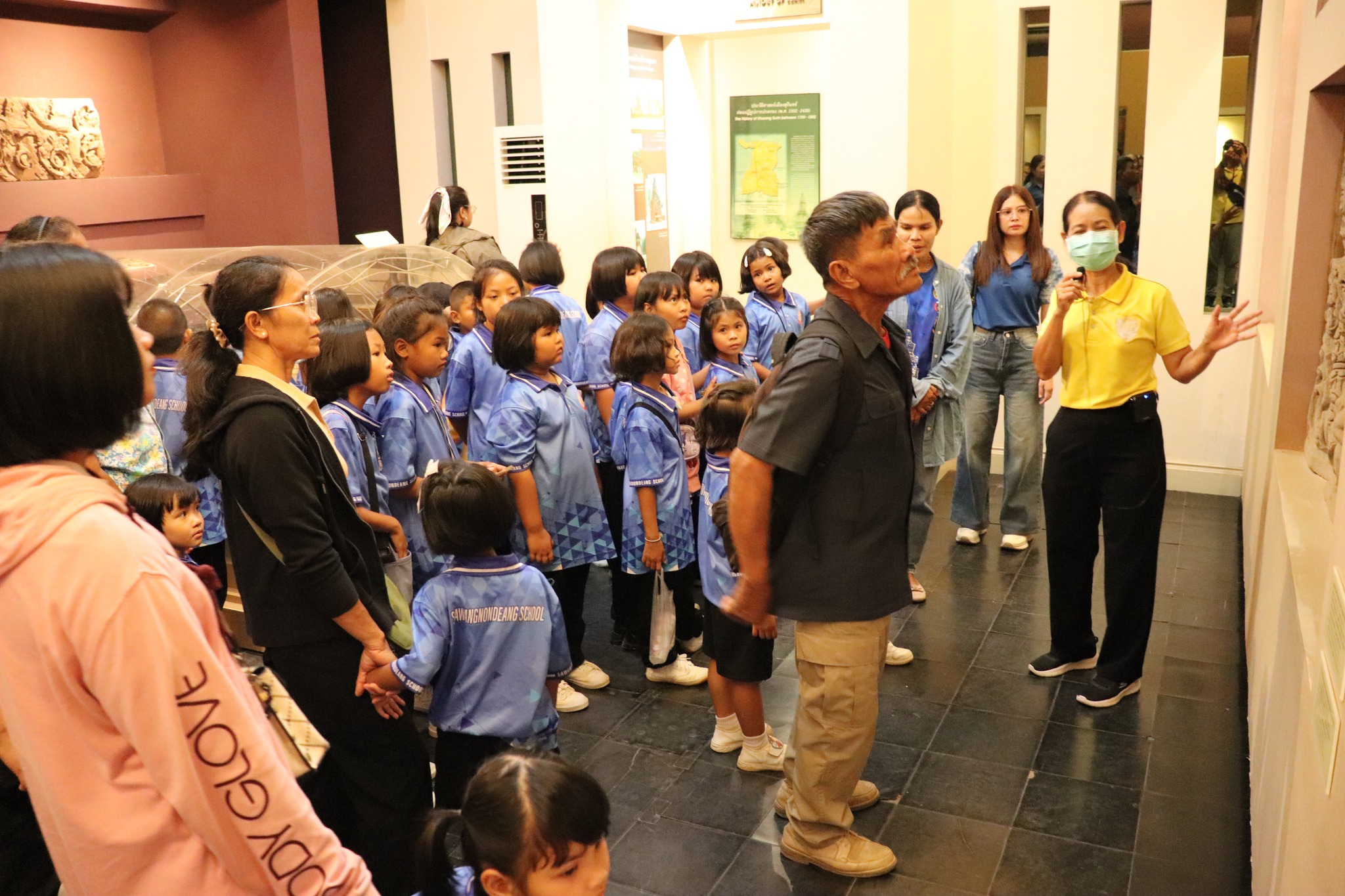 วันศุกร์ที่ ๑๒ กันยายน พ.ศ.๒๕๖๘ เวลา ๑๓.๓๐ น. นักเรียนอนุบาล ๒ ถึงชั้นมัธยมศึกษาปีที่ ๓ จากโรงเรียนบ้านสว่างโนนแดง ตำบลยาง อำเภอศีขรภูมิ จังหวัดสุรินทร์ จำนวน ๒๓๘ คน คุณครู ๒๐ คน เข้าเยี่ยมชมพิพิธภัณฑสถานแห่งชาติ สุรินทร์ โดยมีนายนพรัศม์ เมธีวราธนานันท์ ภัณฑารักษ์ปฏิบัติการ นายธนากร วงศ์สิริพัฒนะ นักวิชาการวัฒนธรรม นางถนอม หลวงกลาง พนักงานประจำพิพิธภัณฑ์ ให้การต้อนรับและบรรยายนำชม