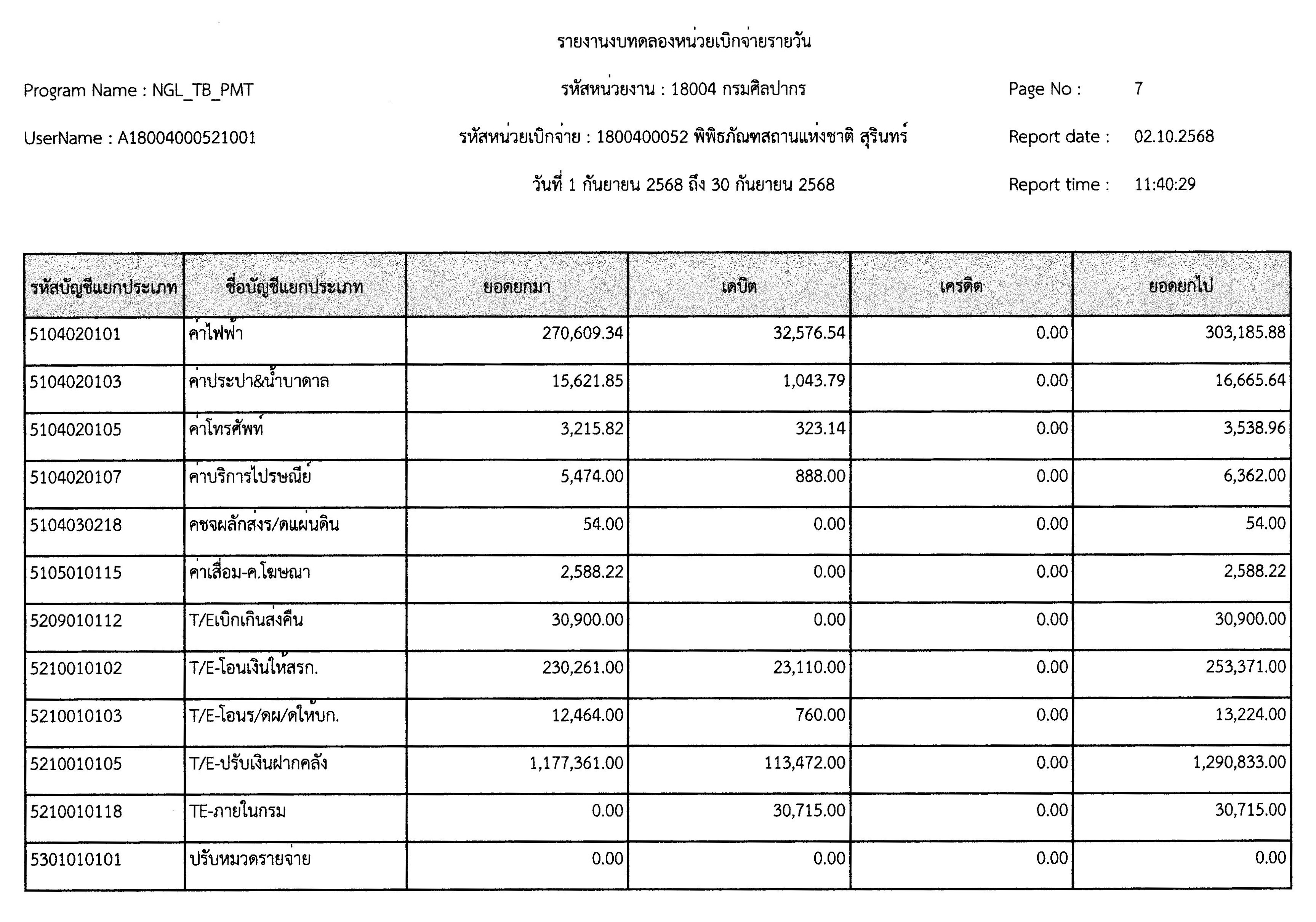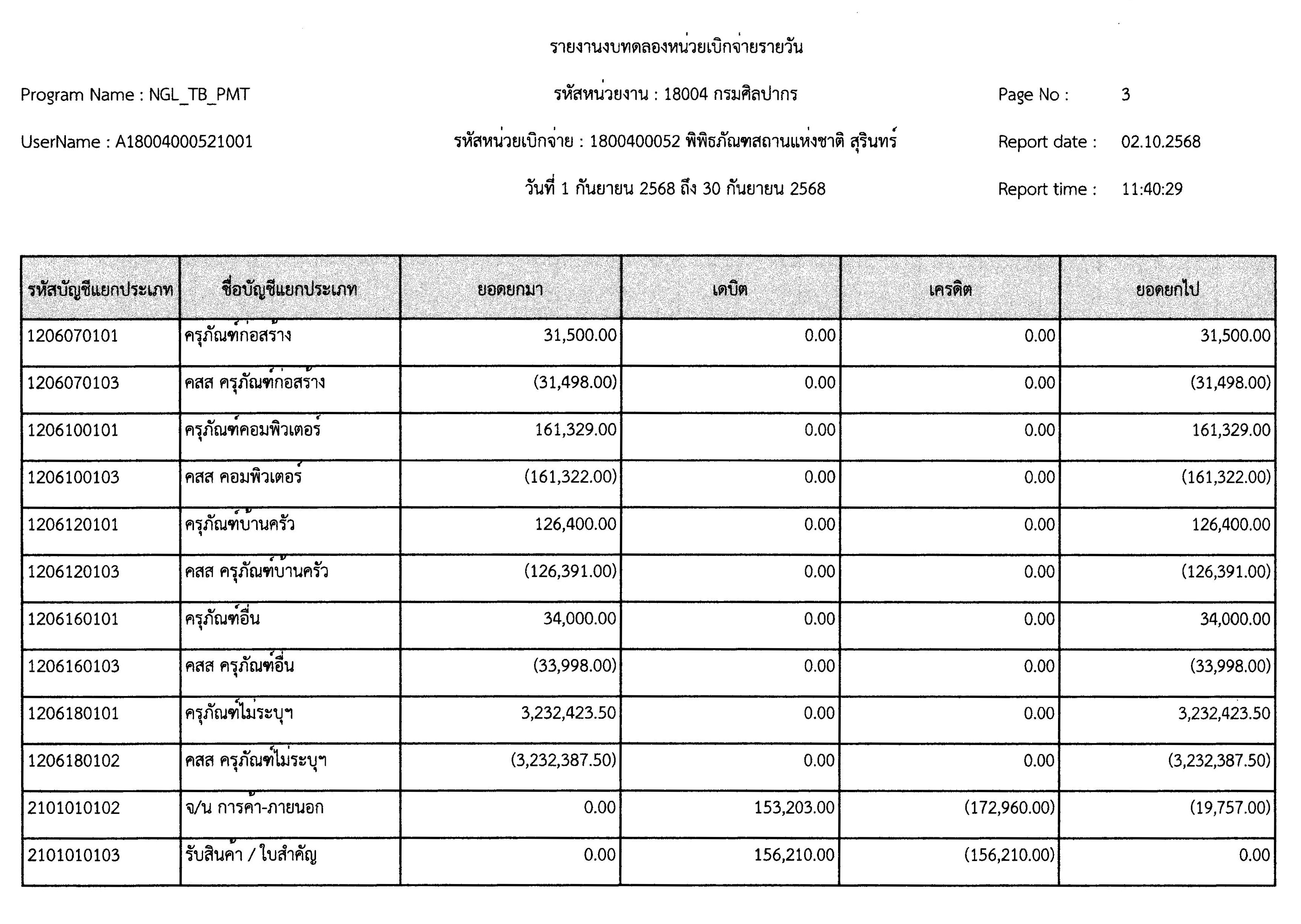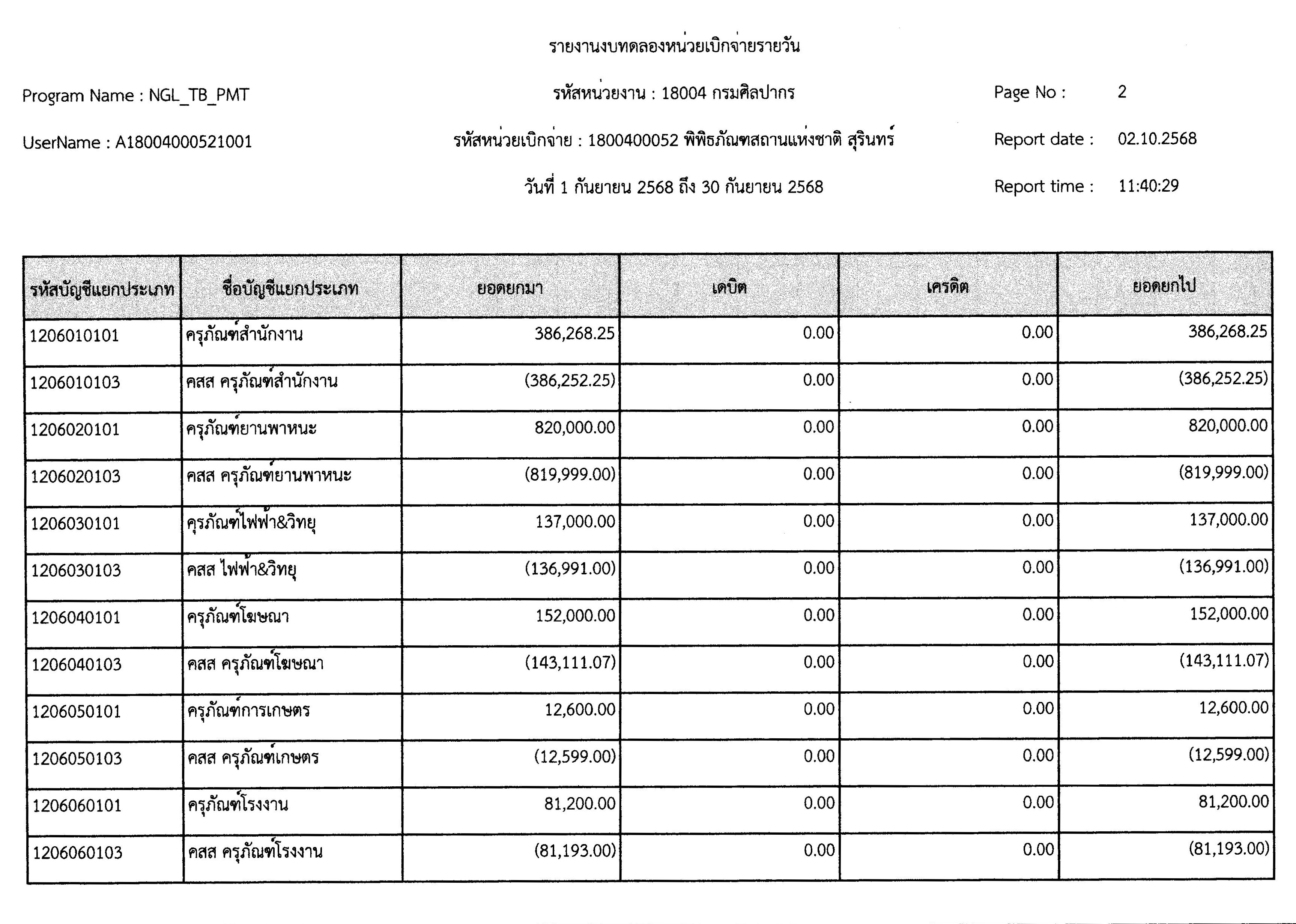รายงานงบทดลองหน่วยเบิกจ่ายรายเดือนกันยายน ๒๕๖๘