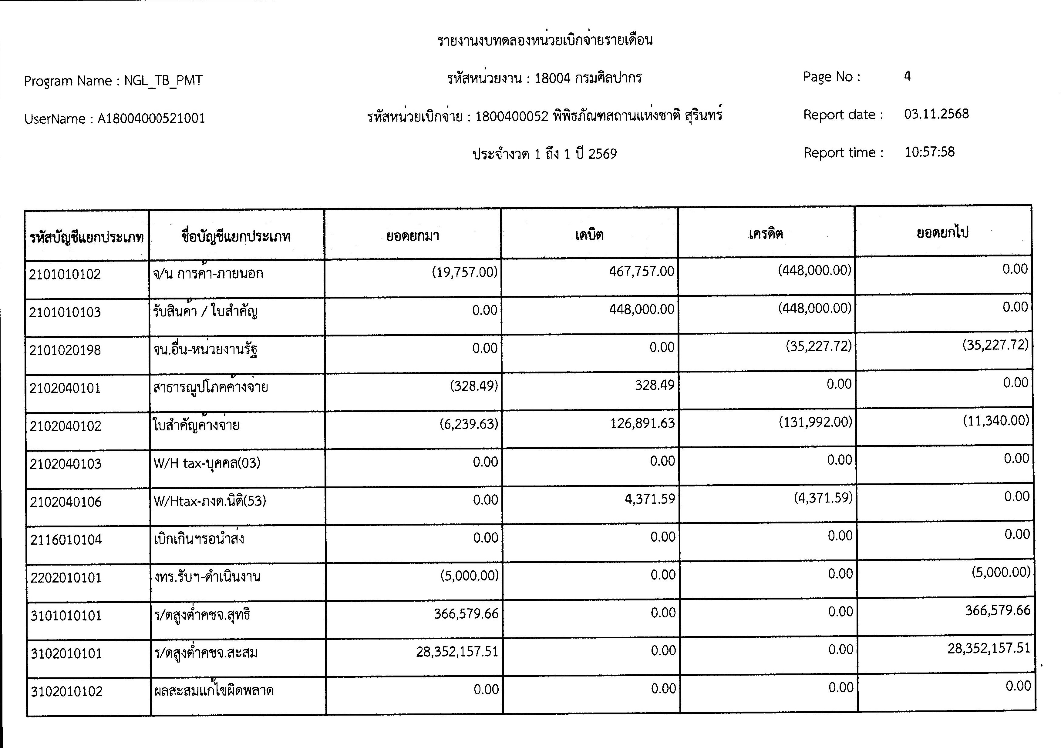 รายงานงบทดลองหน่วยเบิกจ่ายรายเดือน ตุลาคม ๒๕๖๘