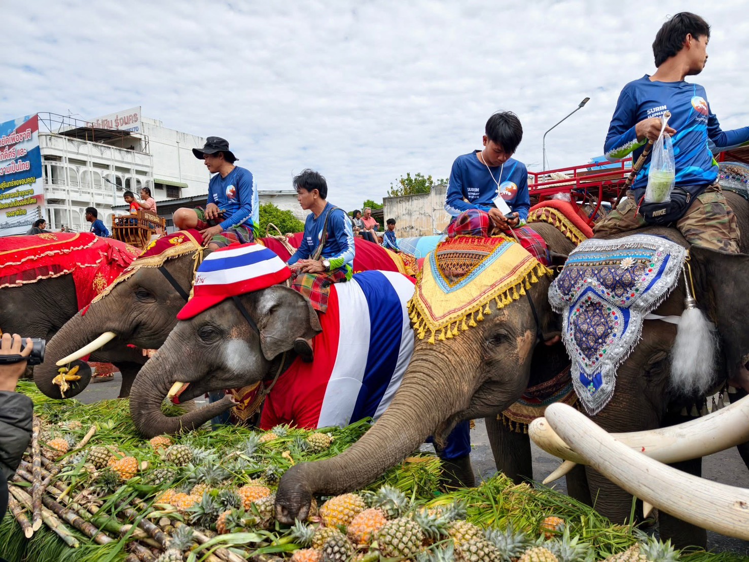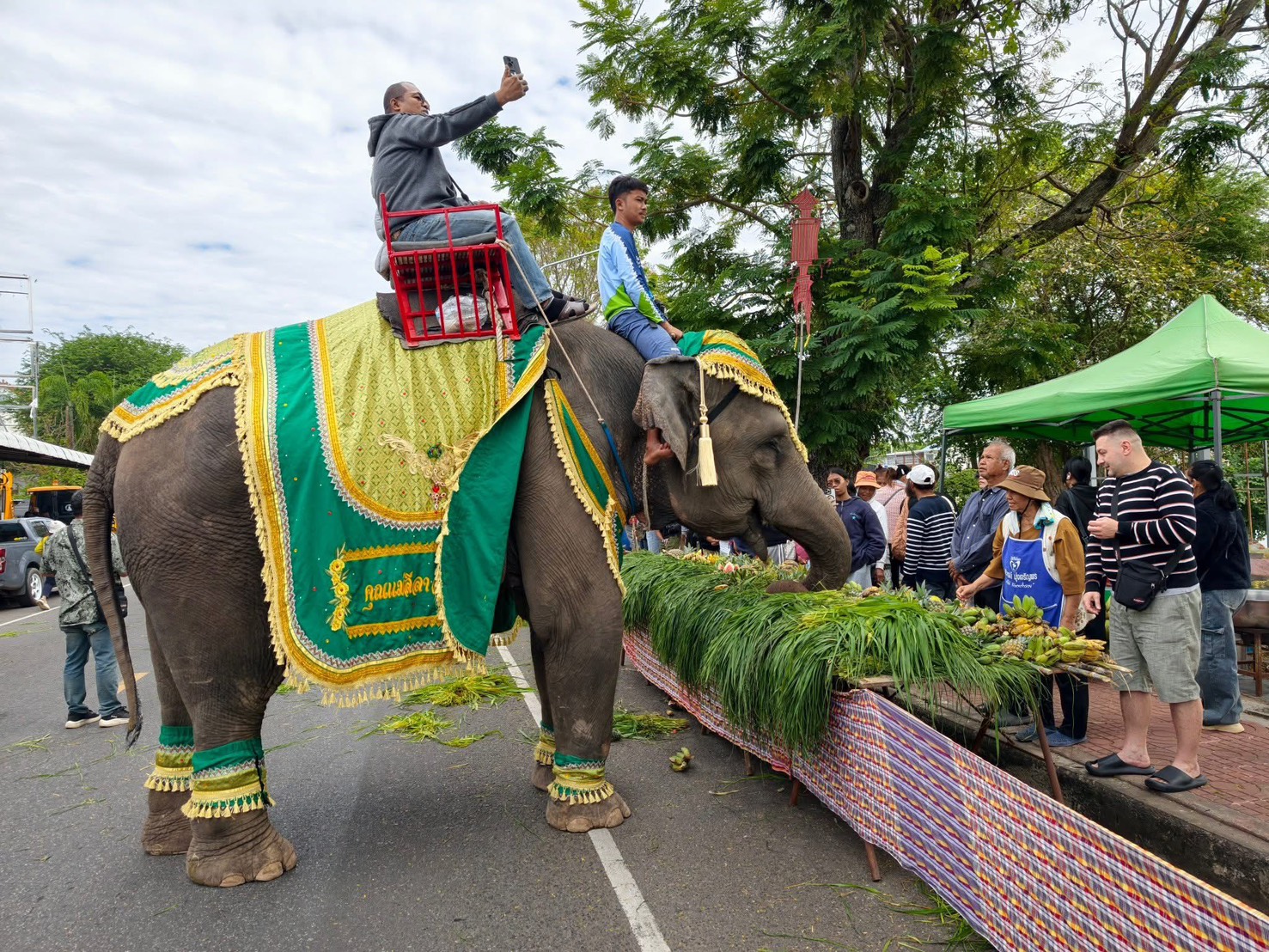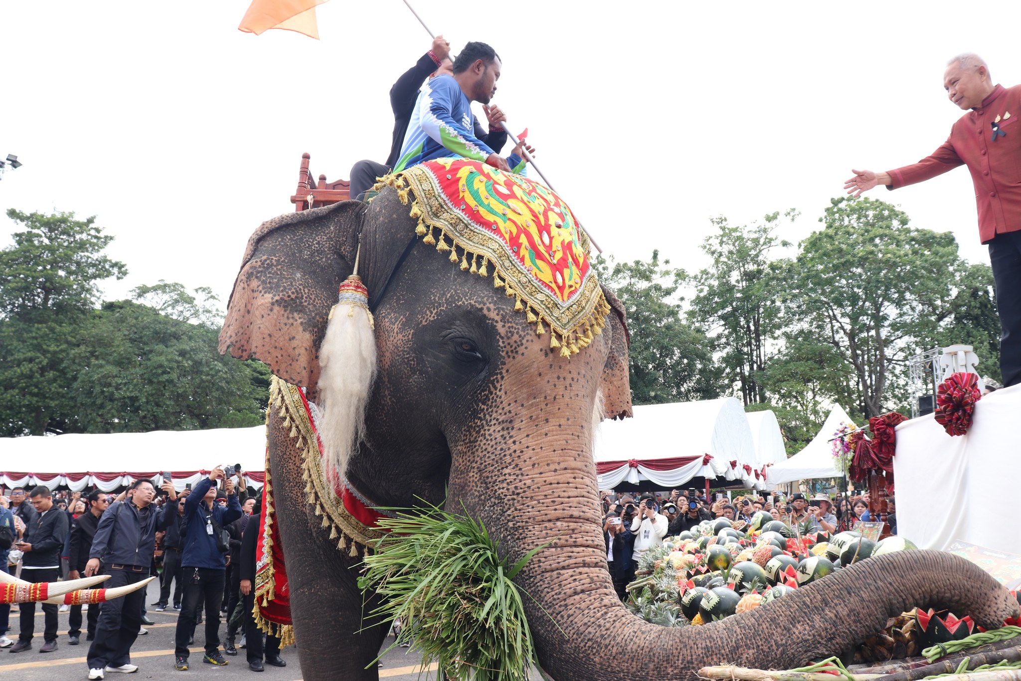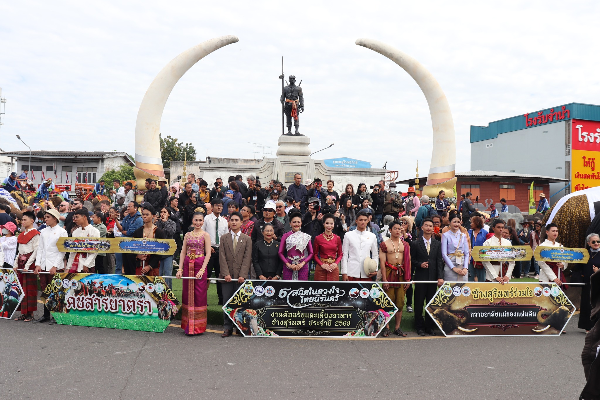 ร่วมพิธีต้อนรับและเลี้ยงอาหารช้าง ณ ลานพิธีอนุสาวรีย์พระยาสุรินทร์ภักดีศรีณรงค์จางวาง จังหวัดสุรินทร์