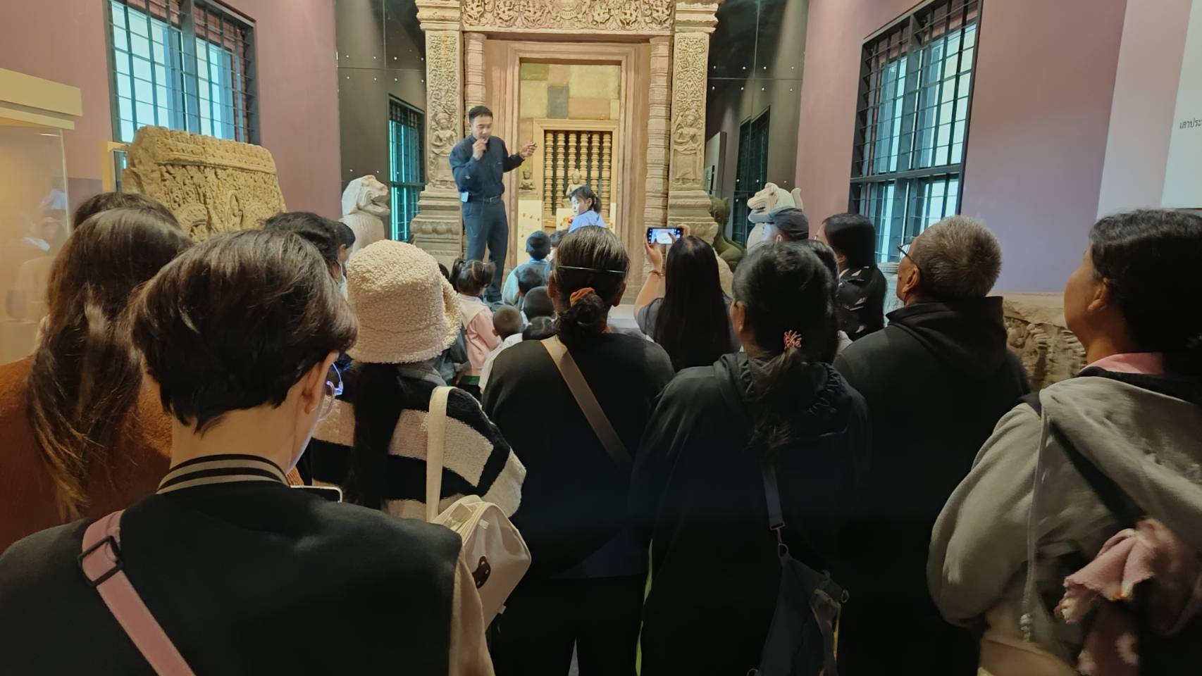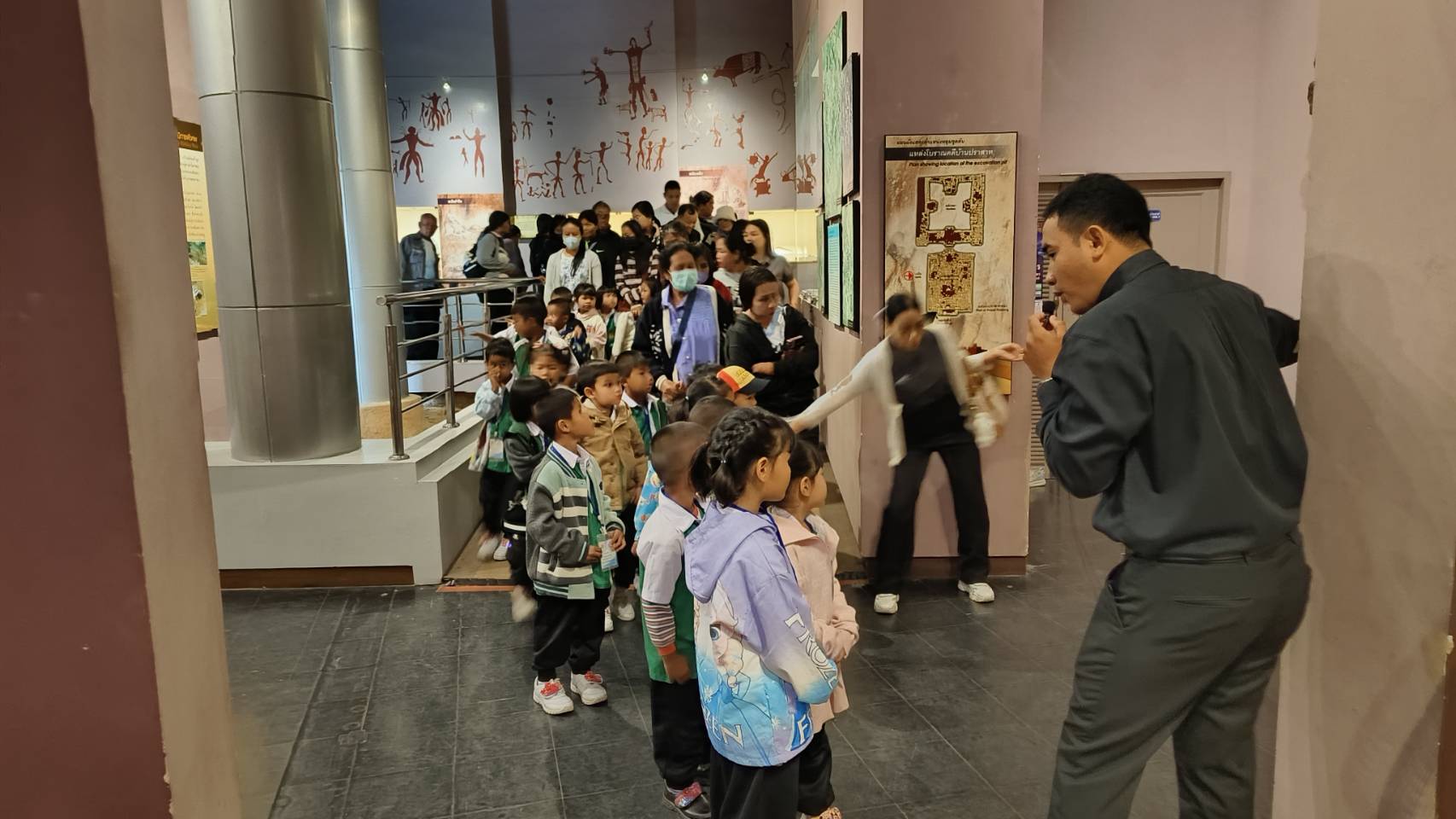 คน คุณครูและผู้ปกครอง ๓๙ คน เข้าเยี่ยมชมพิพิธภัณฑสถานแห่งชาติ สุรินทร์ โดยมีนายภักดี ถาพรผาด พนักงานบริการทั่วไป ให้การต้อนรับและบรรยายนำชม