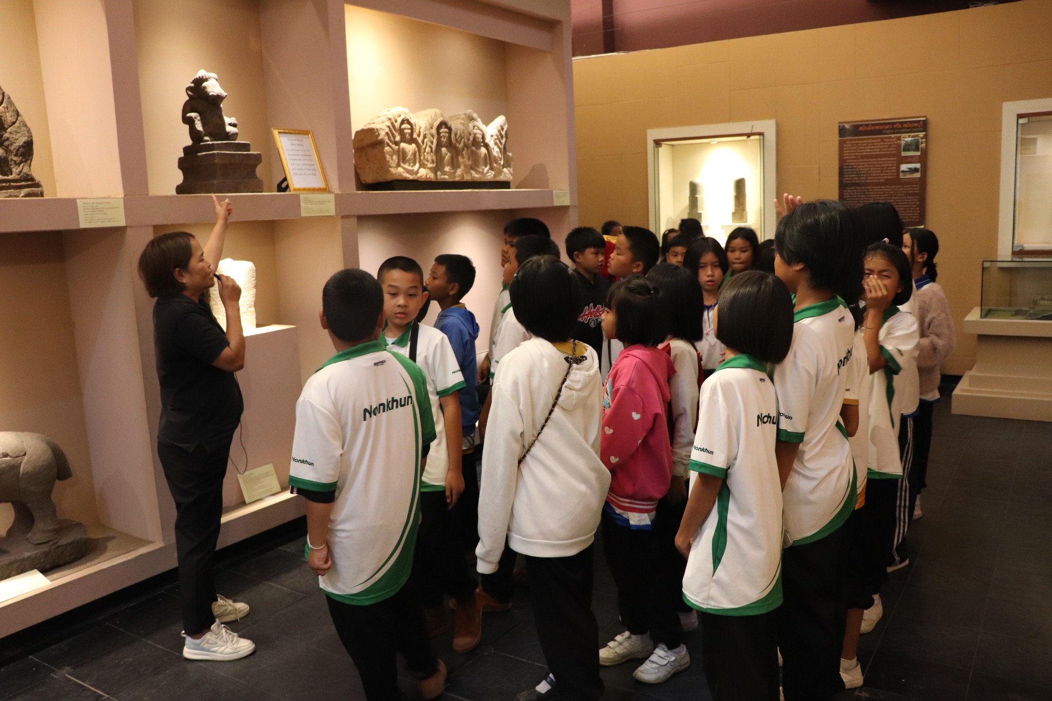 วันพฤหัสบดีที่ ๔ ธันวาคม พ.ศ.๒๕๖๘ เวลา ๑๕.๑๐ น. นักเรียนชั้นประถมศึกษาปีที่ ๔ ถึงชั้นมัธยมศึกษาปีที่ ๓ โรงเรียนบ้านโนนคูณ ตำบลโนนค้อ อำเภอโนนคูณ จังหวัดศรีสะเกษ จำนวน ๑๑๕ คน คุณครู ๑๔ คน เข้าเยี่ยมชมพิพิธภัณฑสถานแห่งชาติ สุรินทร์ โดยมีนางถนอม หลวงกลาง นางศรีสุดา ศรีสด พนักงานประจำพิพิธภัณฑ์ ให้การต้อนรับและบรรยายนำชม