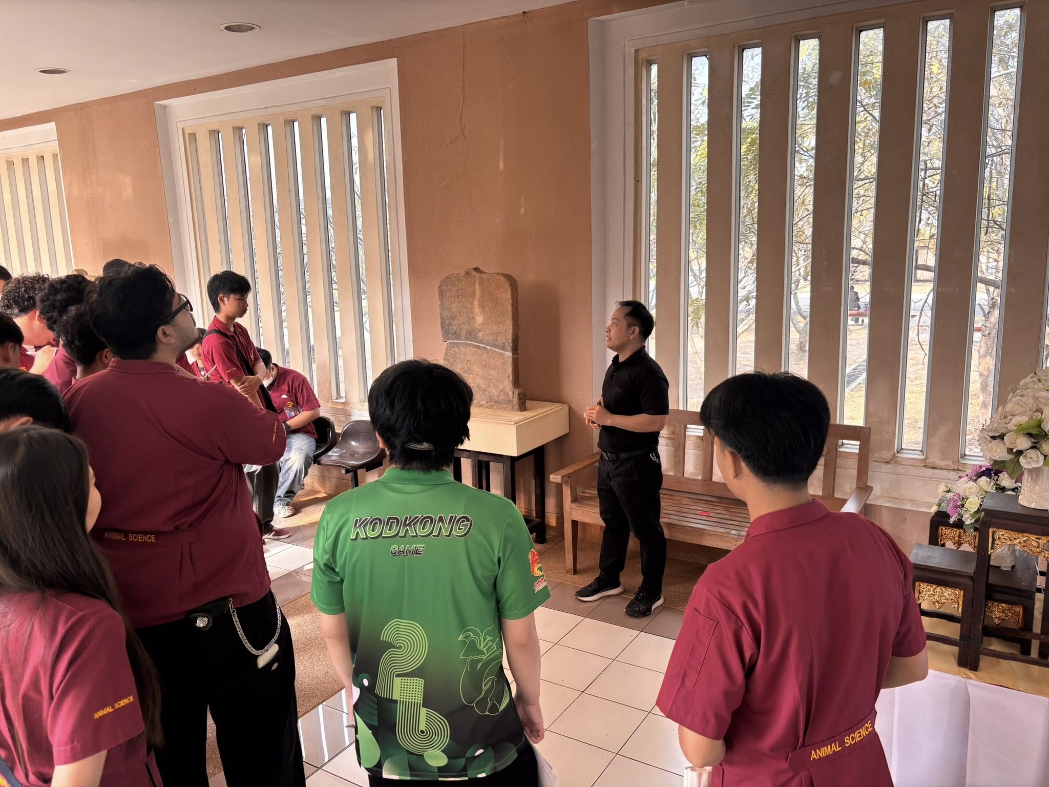 วันพุธที่ ๔ กุมภาพันธ์ พ.ศ. ๒๕๖๙ เวลา ๐๙.๐๐ น. นักศึกษารายวิชาคุณค่าของมนุษย์ สาขาสัตวศาสตร์ คณะเกษตรศาสตร์และเทคโนโลยี มหาวิทยาลัยเทคโนโลยีราชมงคลอีสาน วิทยาเขตสุรินทร์ ตำบลในเมือง อำเภอเมือง จังหวัดสุรินทร์ จำนวน ๓๐ คน อาจารย์ ๑ คน เข้าเยี่ยมชมพิพิธภัณฑสถานแห่งชาติ สุรินทร์ โดยมี นายกรภัทร์ สุขใหญ่ พนักงานประจำพิพิธภัณฑ์ ให้การต้อนรับและบรรยายนำชม