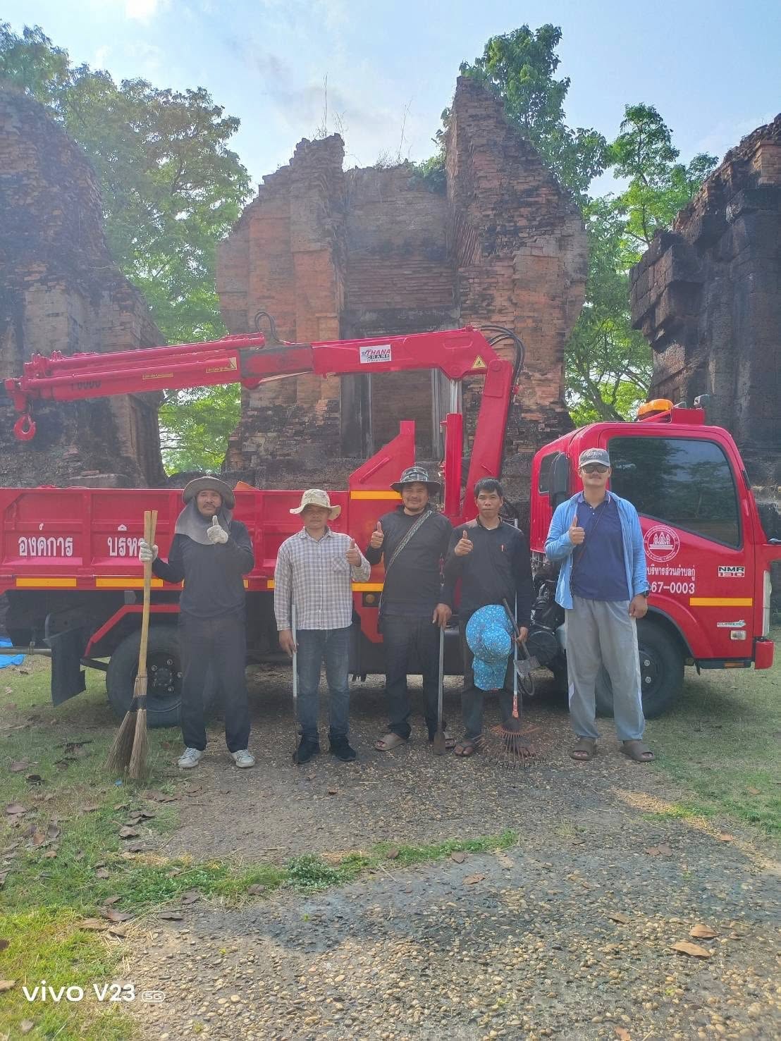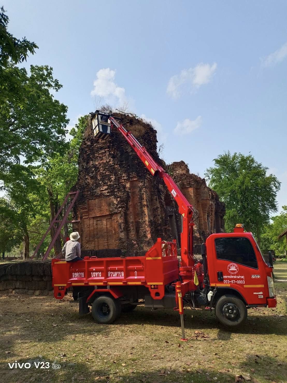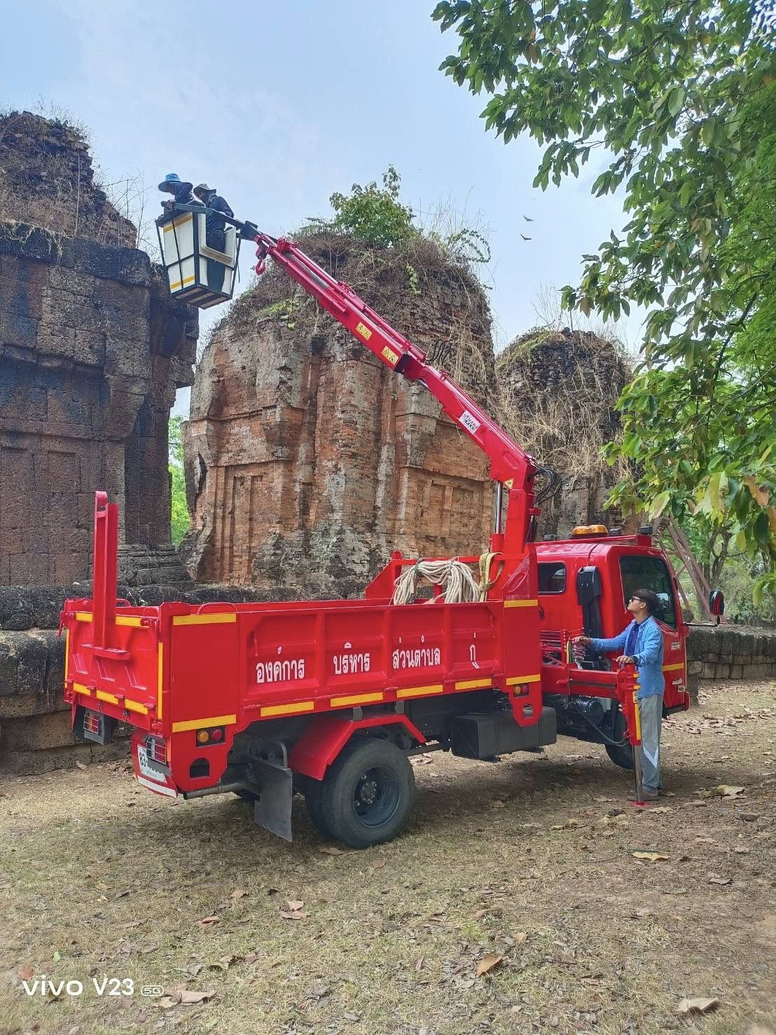 กำจัดต้นไม้และวัชพืชบนยอดโบราณสถานปราสาทปรางค์กู่