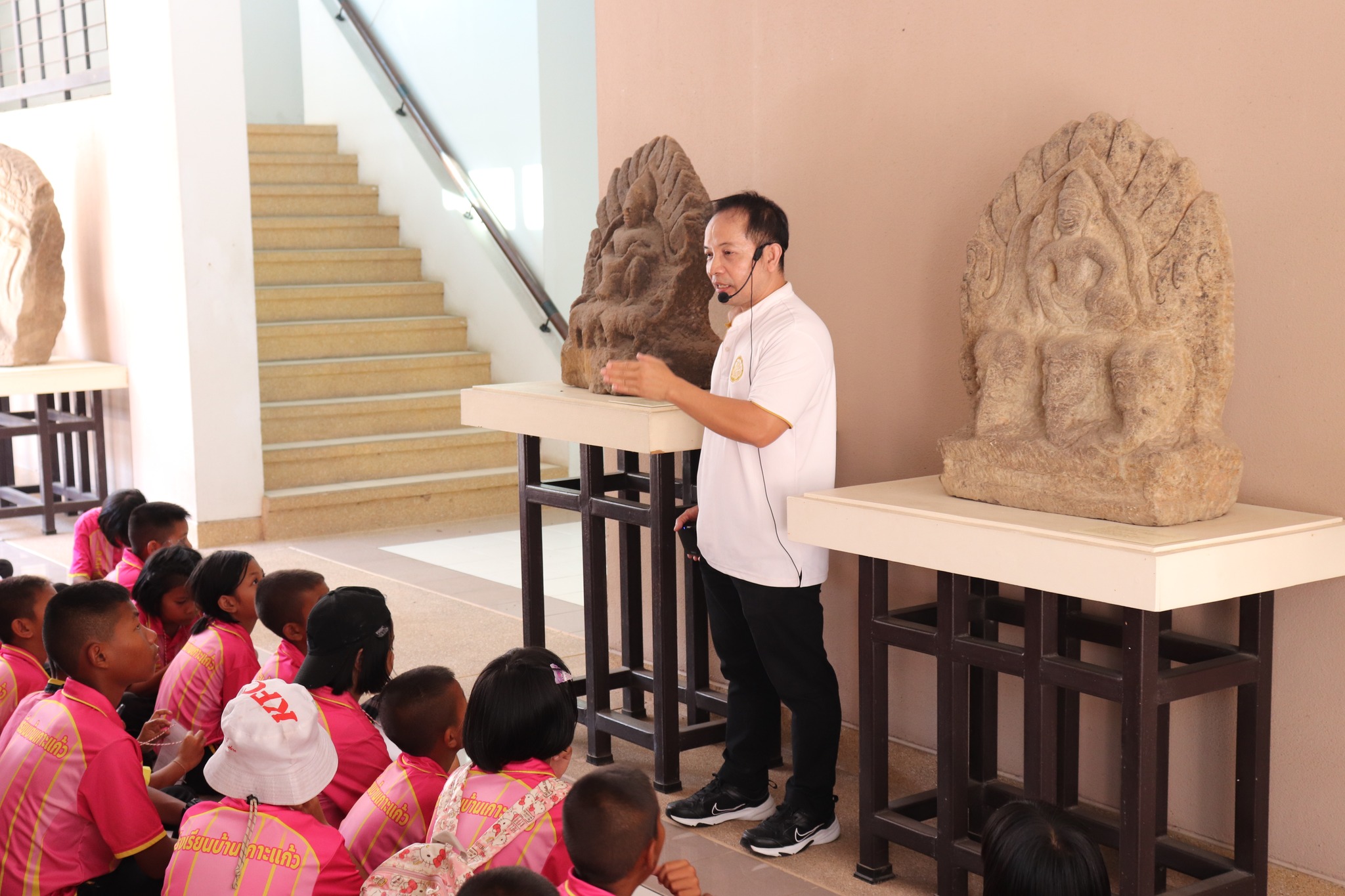 วันเสาร์ที่ ๒๘ กุมภาพันธ์ พ.ศ.๒๕๖๙ เวลา ๑๔.๓๐ น. นักเรียนชั้นอนุบาล ๒ ชั้นประถมศึกษาปีที่ ๖ โรงเรียนบ้านเกาะแก้ว ตำบลเกาะแก้ว อำเภอสำโรงทาบ จังหวัดสุรินทร์ จำนวน ๘๐ คน คุณครูและผู้ปกครอง ๒๐ คน เข้าเยี่ยมชมพิพิธภัณฑสถานแห่งชาติ สุรินทร์ โดยมีนายกรภัทร์ สุขใหญ่ นางศรีสุดา ศรีสด พนักงานประจำพิพิธภัณฑ์ ให้การต้อนรับและบรรยายนำชม
