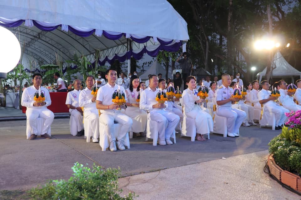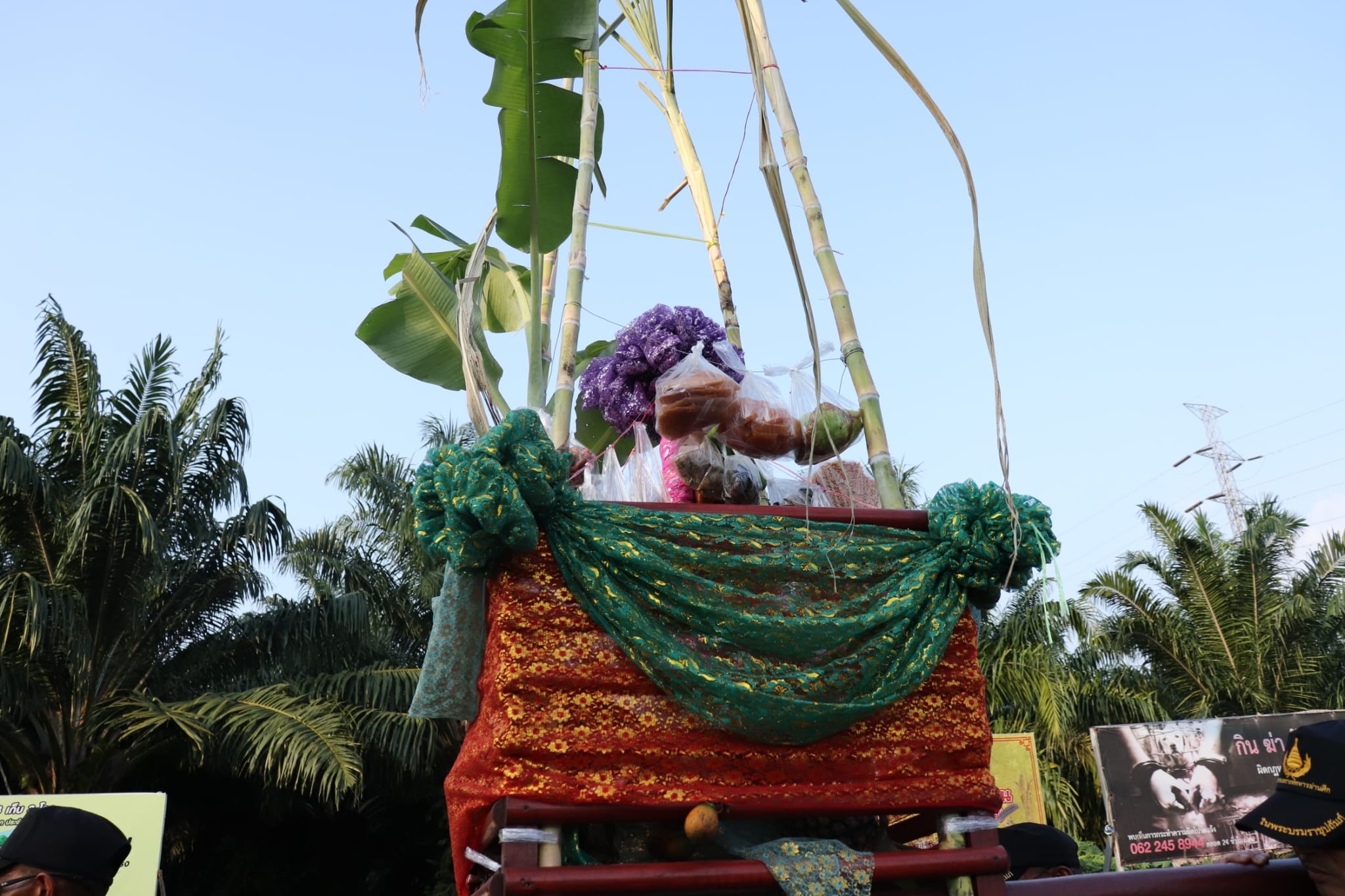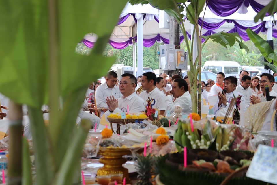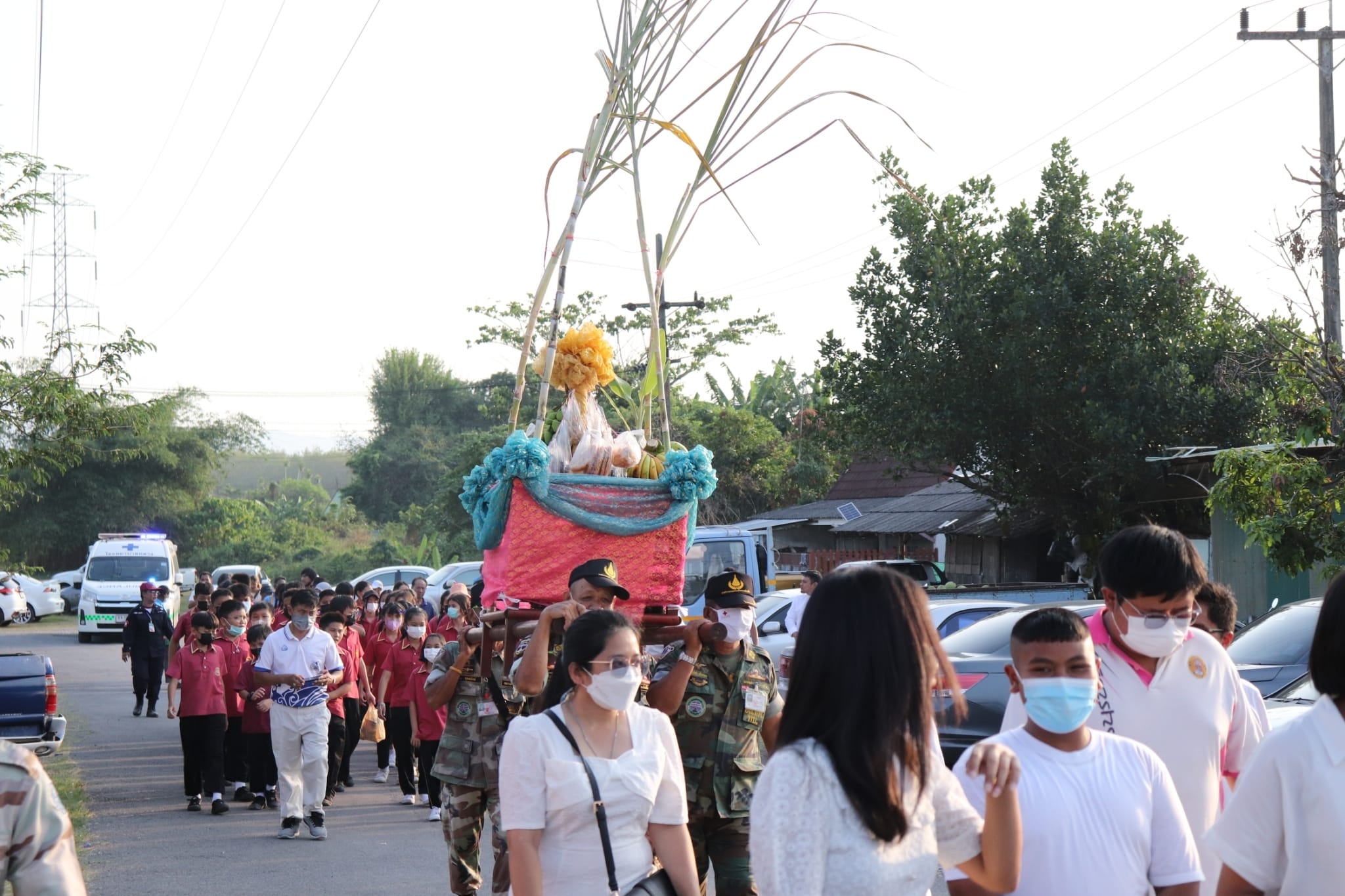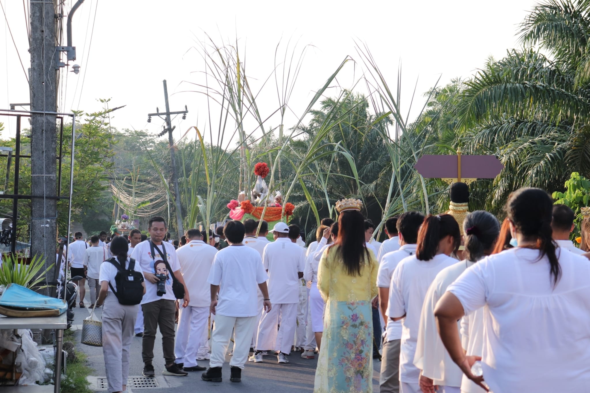 ตอนเย็น เวลา ๑๗.๓๐ น. จะมีขบวนแห่จาดจากศาลเจ้าบ้านเคียน(หง่อเฮี้ยนไต่เต่) มายัง สวนพระพุทธศาสนา วัดม่วงโกมารภัจจ์ ในเวลา ๑๘.๓๐ น. ประธานในพิธี จุดธูปเทียน เริ่มพิธีบวงสรวง