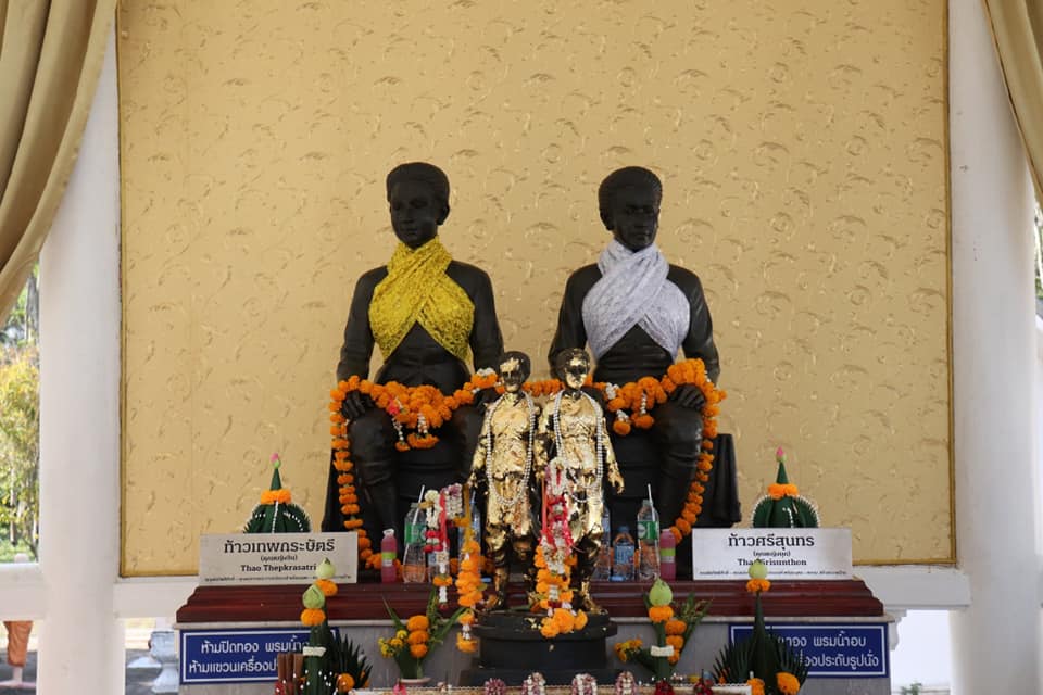 ณ. สวนพระพุทธศาสนา วัดม่วงโกมารภัจจ์ ตำบลเทพกระษัตรี อำเภอถลาง ในวันที่ ๑๒ มีนาคม ของทุกปี เพื่อรำลึกถึงบรรพบุรุษ และรำลึกถึงท้าวเทพกระษัตรี (คุณหญิงจัน) ท้าวศรีสุนทร (คุณมุก) รวมถึงบรรพชนผู้กล้า ที่ร่วมกันสู้ในศึกสงครามเก้าทัพจนชนะพม่า ในวันที่ ๑๓ มีนาคม พ.ศ.๒๓๒๘ ซึ่งชาวถลาง ถือกันว่าวันนี้เป็น "วันถลางชนะศึก"