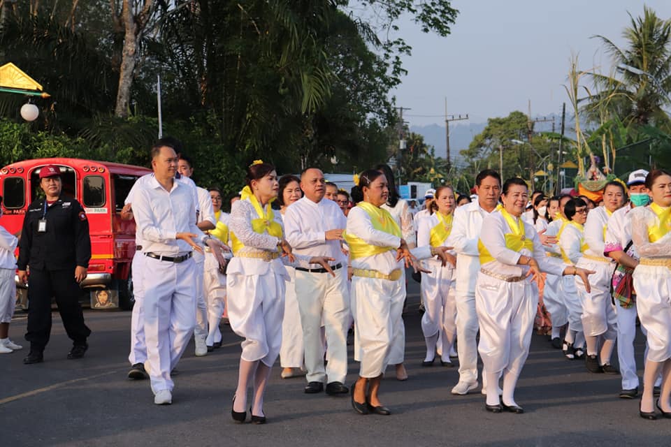 วันที่ ๑๒ มีนาคม “วันงานบวงสรวงปู่ย่า ตายาย และบรรพชนผู้กล้าเมืองถลาง” ช่วงเช้า เวลา ๐๘.๓๐ น.จะมีพิธีทำบุญตักบาตร และถวายภัตตาหารเพล แด่พระภิกษุสงฆ์