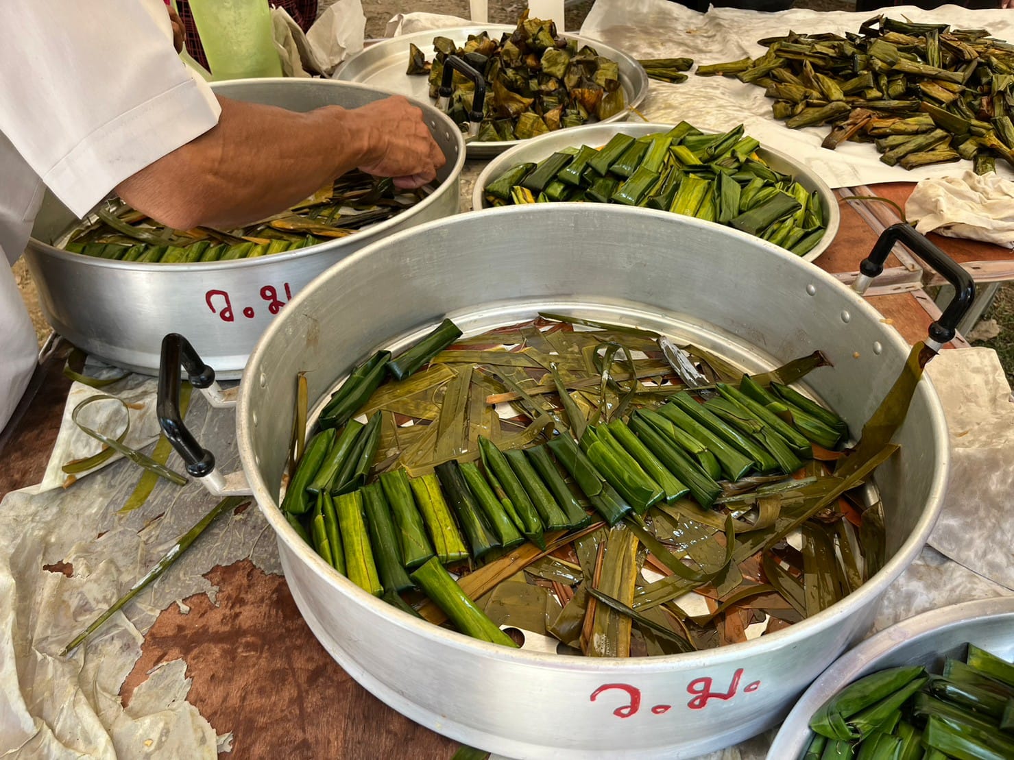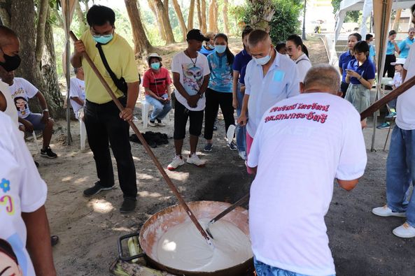 วันที่ ๑๐ มีนาคม “วันกวนขนมกาละแม” วัตถุดิบที่ใช้ มีแป้งข้าวเหนียว หัวกะทิ น้ำตาล และแบะแซ กวนส่วนผสมทั้งหมดในกระทะทองเหลือง โดยใช้ไฟปานกลาง-อ่อน เป็นเวลาประมาณ ๔ ชั่วโมง การกวนกาละแม นอกจากมีความยุ่งยากในการเตรียมวัตถุดิบในปริมาณมากแล้ว ยังต้องอาศัยแรงผู้ชายหลายคนสลับกันกวน แบบไม่มีหยุดพัก การกวนกาละแมจึงเป็นการทำขนมที่ทำได้ยาก จะมีขึ้นเฉพาะในงานมงคลต่าง ๆ เช่น งานทำบุญใหญ่ของชุมชน งานแต่งงาน เป็นต้น เสร็จแล้วก็จะแบ่งใส่ถาดเก็บไว้สำหรับใช้ในพิธีบวงสรวง ที่เหลือก็แจกจ่ายให้กับคนที่มาช่วยกวนกาละแม