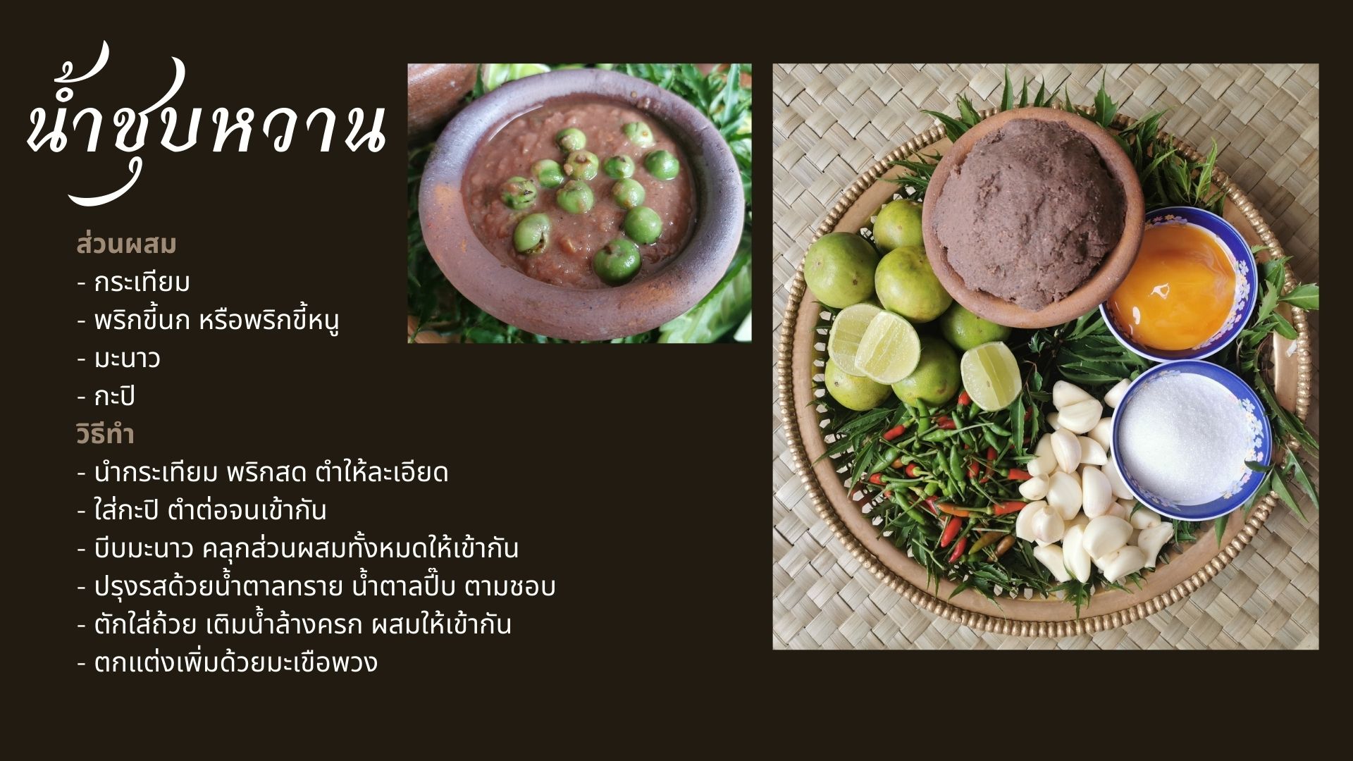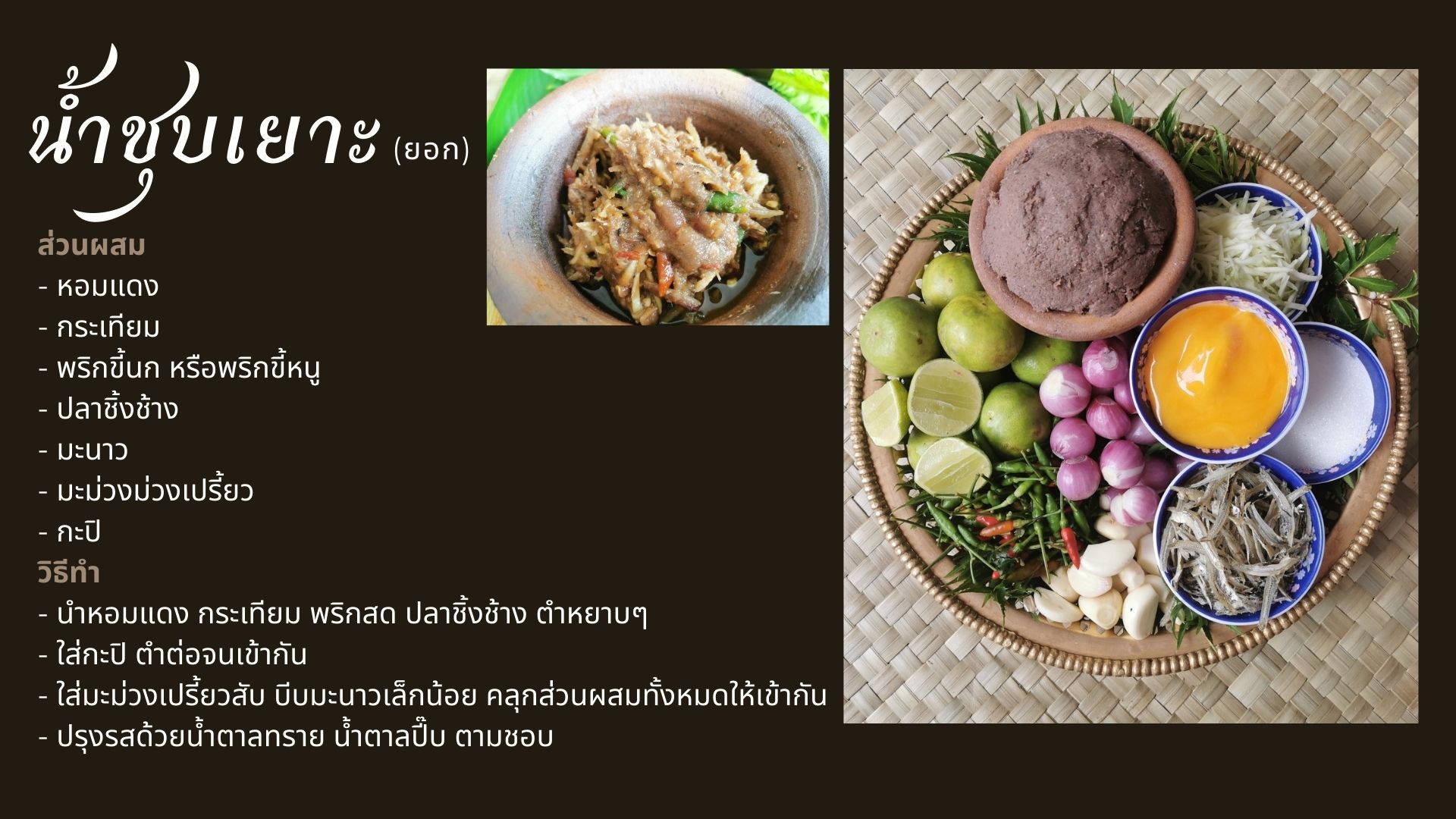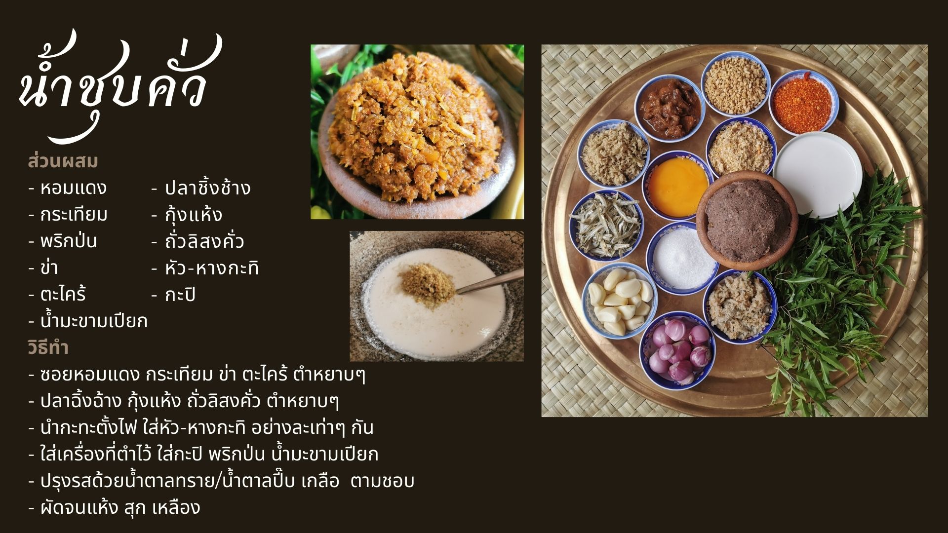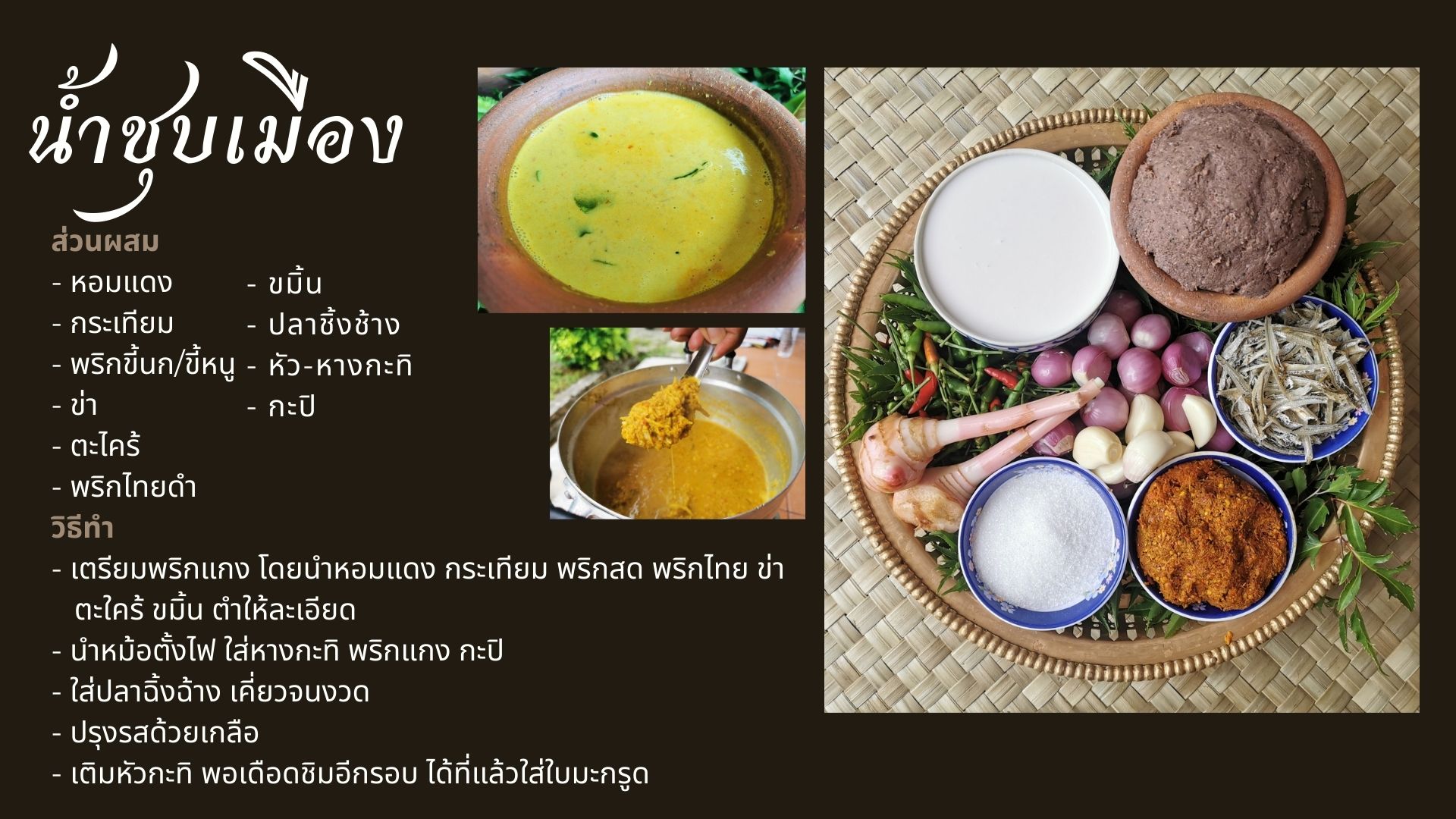 น้ำชุบ หรือ น้ำพริก เป็นอาหารคาวอย่างหนึ่งของคนใต้ มีกะปิเป็นวัตถุดิบหลัก และวัตถุดิบอื่น ๆ ที่สามารถหาได้ตามพื้นบ้าน มีขั้นตอนการทำไม่ยุ่งยาก ใช้เวลาน้อย ซึ่งแต่ละพื้นที่ก็จะมีส่วนผสมของวัตถุดิบ และขั้นตอนการทำที่แตกต่างกันออกไป