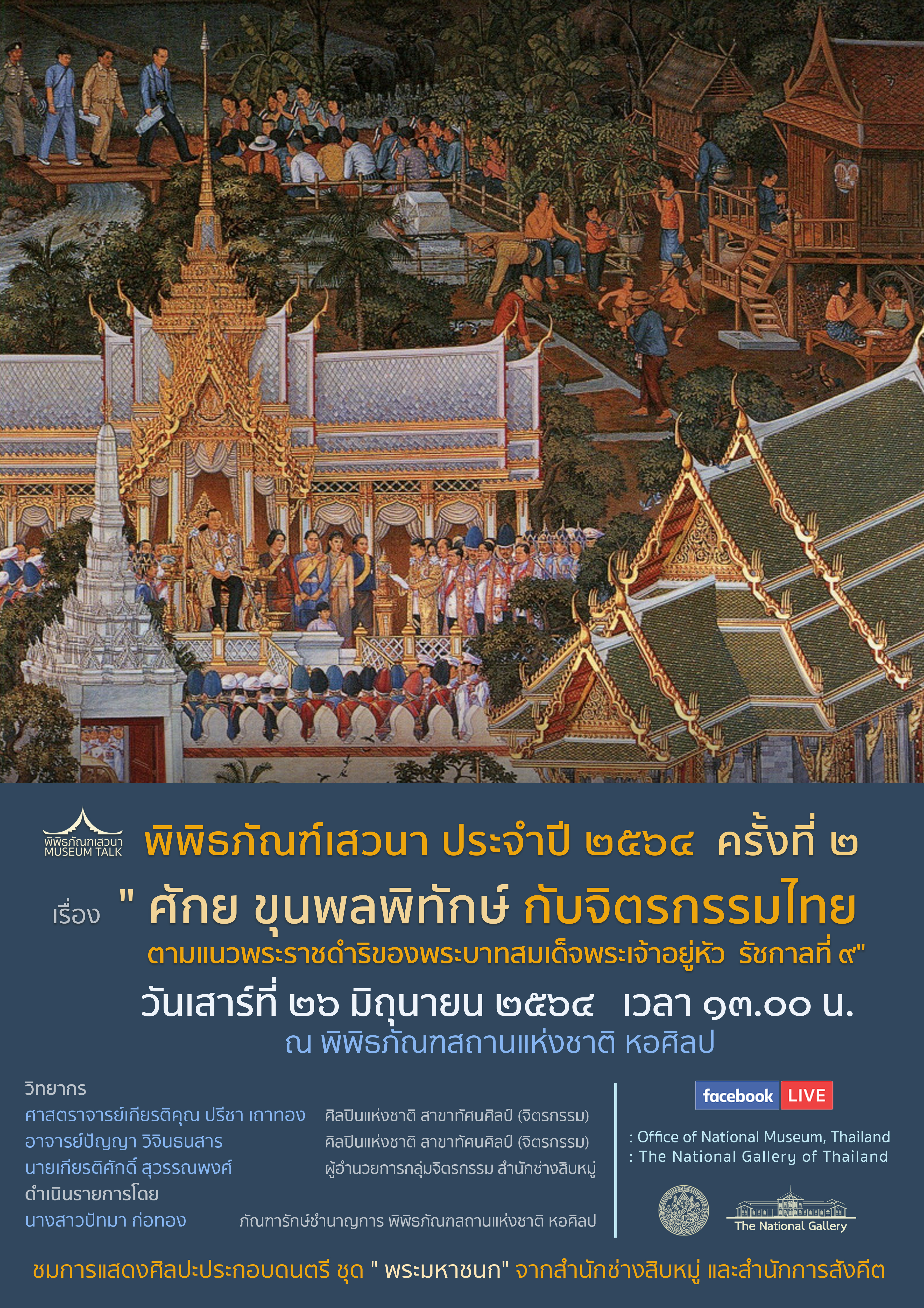 ในวันเสาร์ที่ 26 มิถุนายน 2564 เวลา 13.00 น. ณ ห้องเอนกประสงค์ พิพิธภัณฑสถานแห่งชาติ หอศิลป