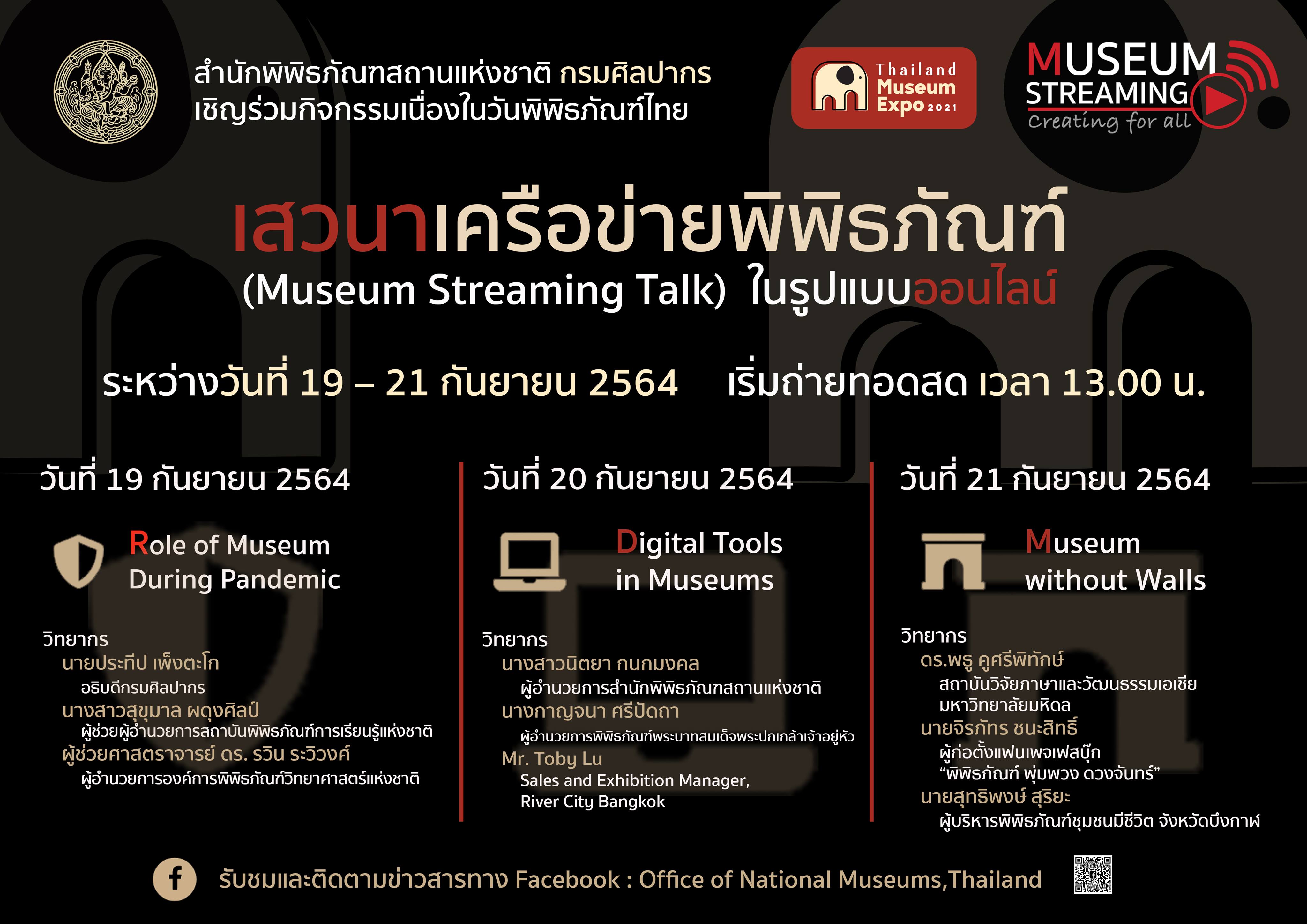 ขอเชิญเข้าร่วมกิจกรรม "เสวนาเครือข่ายพิพิธภัณฑ์” (Museum Streaming Talk)