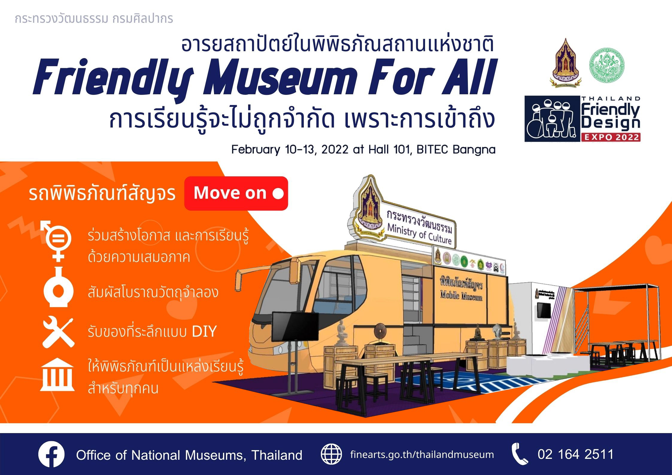 กระทรวงวัฒนธรรม โดย กรมศิลปากร นำรถพิพิธภัณฑ์สัญจร พร้อมสื่อการเรียนรู้และกิจกรรมเพื่อคนทุกช่วงวัย เข้าร่วมจัดงาน "Thailand Friendly Design Expo 2022 : มหกรรมอารยสถาปัตย์และนวัตกรรมสุขภาพเพื่อคนทั้งมวลครั้งที่ 5