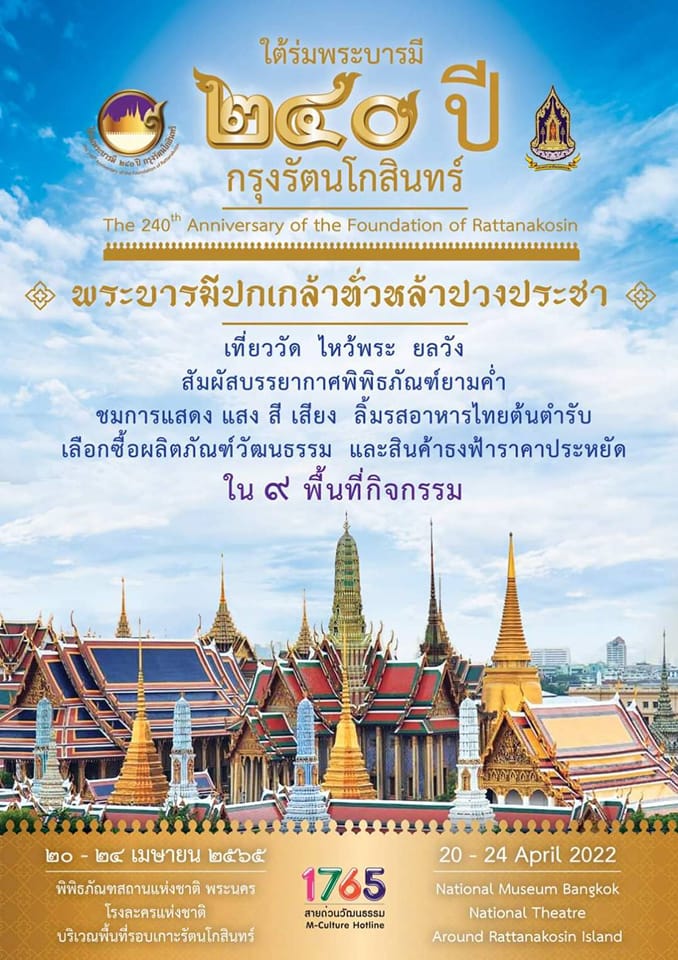 ขอเชิญเที่ยวงาน “ใต้ร่มพระบารมี 240 ปี กรุงรัตนโกสินทร์” THE 240TH ANNIVERSARY OF THE FOUNDATION OF RATTANAKOSIN ภายใต้หัวข้อ “พระบารมีปกเกล้าทั่วหล้าปวงประชา”