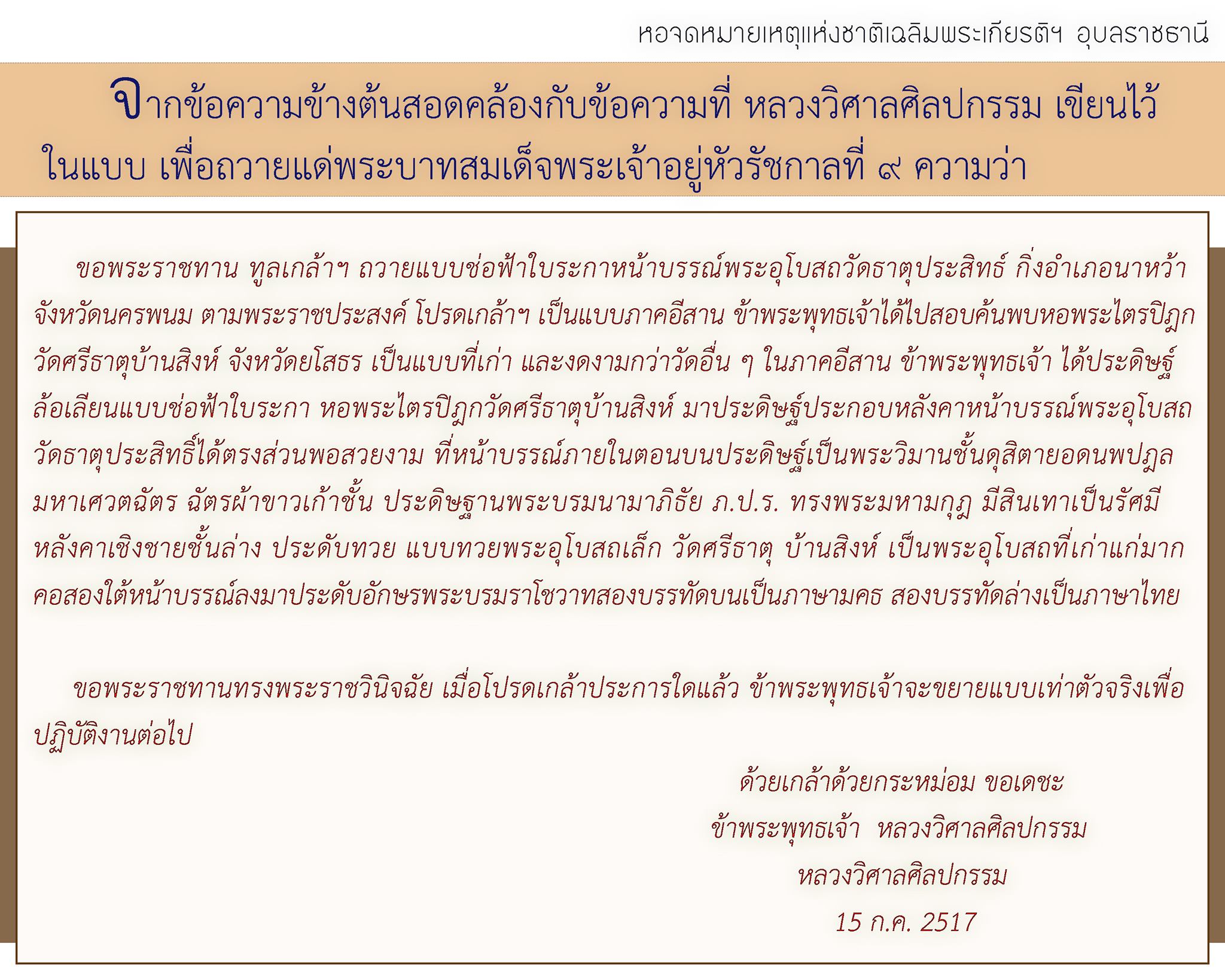 จดหมายเหตุเล่าเรื่อง ตอนที่ ๘ การสร้างหน้าบันพระอุโบสถวัดพระธาตุประสิทธิ์ อำเภอนาหว้า จังหวัดนครพนม