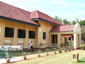 พิพิธภัณฑสถานแห่งชาติ อุบลราชธานี เดิมเป็นศาลากลางจังหวัด สร้างเมื่อ พ.ศ. ๒๔๖๑ ในสมัยพระบาทสมเด็จพระมงกุฏเกล้าเจ้าอยู่หัวฯ บนที่ดินที่พระเจ้าบรมวงศ์เธอกรมหลวงสรรพสิทธิ์ประสงค์ข้าหลวงต่างพระองค์ พระบาทสมเด็จพระจุลจอมเกล้าเจ้าอยู่หัวฯ สำเร็จราชการมณฑลลาวกาว (มลฑลอีสาน) ประทับ ณ เมืองอุบลราชธานี ได้ทรงขอมาจากทายาทของราชบุตร (สุ่ย บุตรโลบล) คือ หม่อมเจียงคำ ชุมพล ณ อยุธยา (ในพระเจ้าบรมวงศ์เธอกรมหลวงสรรพสิทธิประสงค์)เพื่อให้เป็นที่ สาธารณประโยชน์สำหรับก่อสร้างสถานที่ราชการลักษณะของอาคาร เป็นตึกชั้นเดียวยกสูง ตัวอาคารก่ออิฐฉาบปูน หลังคาทรงปันหยา แผนผังอาคารเป็นรูปสี่เหลี่ยมผืนผ้าหันหน้าไปทางทิศเหนือ ภายในอาคารประกอบด้วยห้องโถงใหญ่อยู่ตรงกลาง มีระเบียงทางเดินและห้องขนาดเล็กอยู่โดยรอบ เหนือกรอบประตูและหัวเสารับชายคาที่ระเบียงประดับด้วยไม้ฉลุลายพันธู์พฤกษา ต่อมาเมื่อบ้านเมืองเติบโตขึ้นอาคารศาลากลางหลังนี้มีสภาพคับแคบไม่เพียงพอ กับหน่วยงานราชการที่เพิ่มขึ้น จึงได้สร้างอาคารศาลากลางหลังใหม่ทางด้านตะวันตกของทุ่งศรีเมือง เมื่อ พ.ศ. ๒๕๑๑ ส่วนอาคารศาลากลางหลังเก่าได้ใช้เป็นสำนักงานของหน่วยราชการต่างๆมาตลอด ใน ปี พ.ศ. ๒๕๒๖ นายบุญช่วย ศรีสารคาม ผู้ว่าราชการจังหวัดอุบลราชธานี ได้มอบอาคารศาลากลางหลังเก่าให้กรมศิลปากรบูรณะ และใช้ประโยชน์จัดตั้งขึ้นเป็นพิพิธภัณฑสถานแห่งชาติ เมื่อการบูรณะซ่อมแซมตัวอาคาร และจัดนิทรรศการถาวรแล้วเสร็จ กรมศิลปากรได้กราบบังคมทูลเชิญสมเด็จพระเทพรัตนราชสุดาฯสยามบรมราชกุมารี เสด็จพระราชดำเนินทรงเปิดพิพิธภัณฑสถานแห่งชาติ อุบลราชธานี เมื่อวันที่ ๓๐ มิถุนายน พ.ศ.๒๕๓๒ พิพิธภัณฑสถานแห่งชาติ อุบลราชธานี เป็นพิพิธภัณฑสถานแห่งชาติที่กรมศิลปากรจัดตั้งขึ้นเพื่อตอบสนองความต้องการ ของท้องถิ่นที่จะเป็นศูนย์อนุรักษ์และเผยแพร่ศิลปวัฒนธรรมของท้องถิ่น ตามแนวทางการพัฒนากิจการพิพิธภัณฑ์สมัยใหม่ การจัดแสดงนิทรรศการถาวรจึงมุ่งเน้นเรื่องราวต่างๆ ของจังหวัดอุบลราชธานี ทั้งทางภูมิศาสตร์ ธรณีวิทยา ประวัติศาสตร์ โบราณคดี วัฒนธรรมพื้นบ้าน และชาติพันธุ์วิทยา