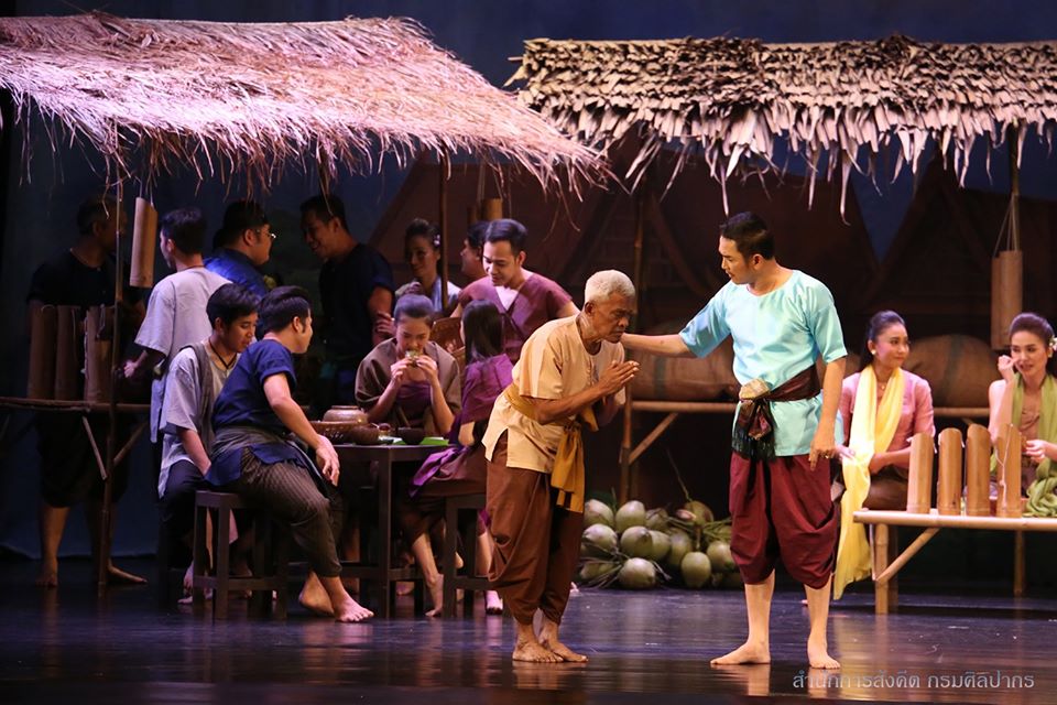ภาพการแสดงรายการดนตรีไทยพรรณนา ละครซ้อนดนตรี (พูดสลับร้อง) เรื่อง"สี่บท" แสดงวันเสาร์ที่ ๒๑ กันยายน ๒๕๖๒ เวลา ๑๔.๐๐ น. ณ โรงละครแห่งชาติ
