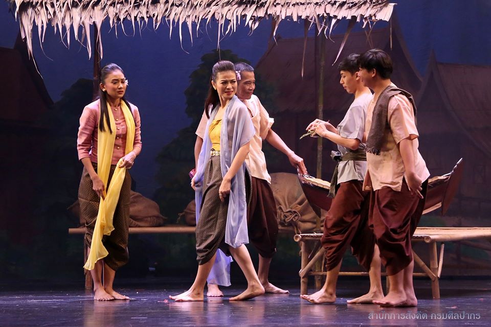 ภาพการแสดงรายการดนตรีไทยพรรณนา ละครซ้อนดนตรี (พูดสลับร้อง) เรื่อง"สี่บท" แสดงวันเสาร์ที่ ๒๑ กันยายน ๒๕๖๒ เวลา ๑๔.๐๐ น. ณ โรงละครแห่งชาติ