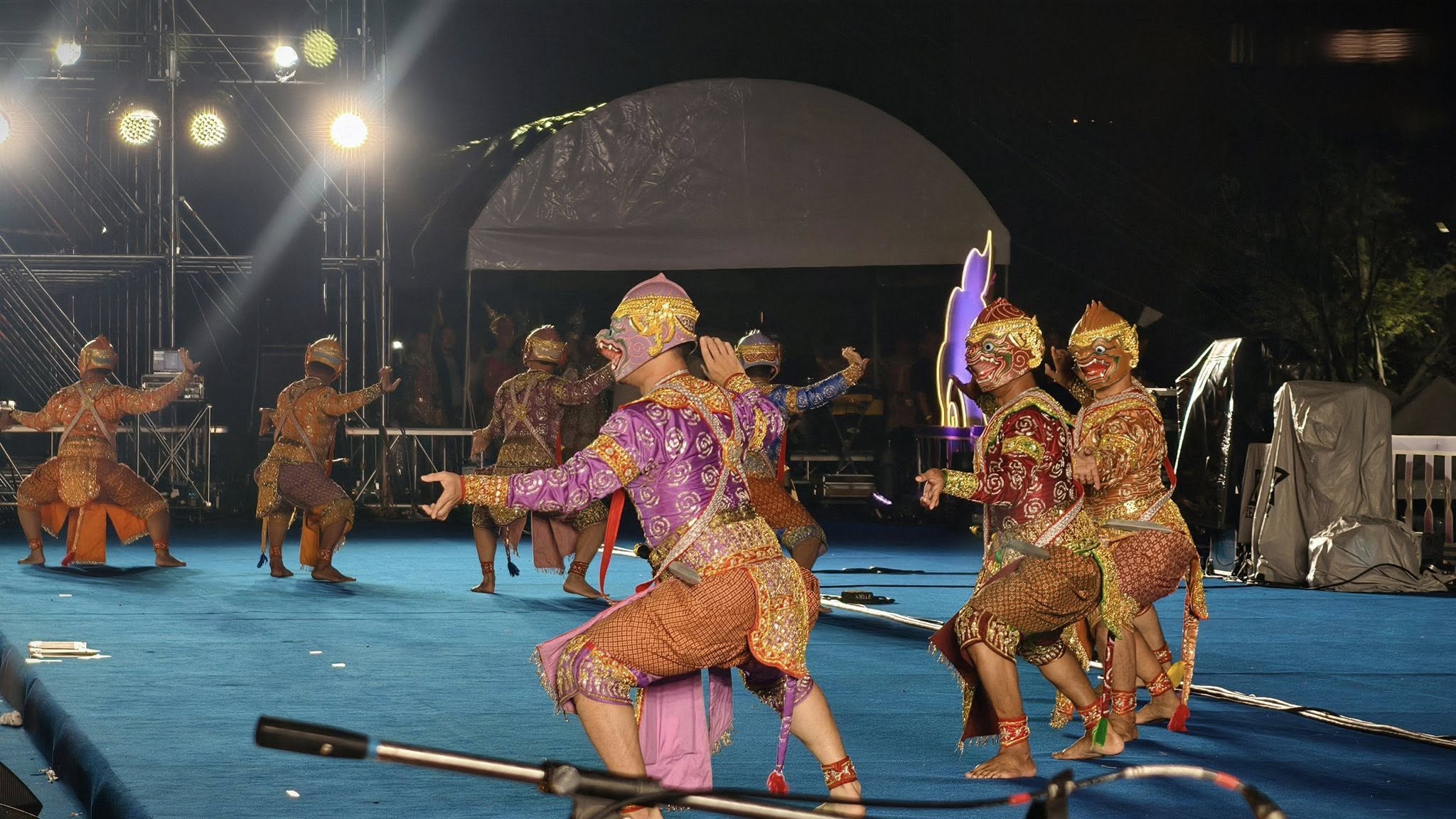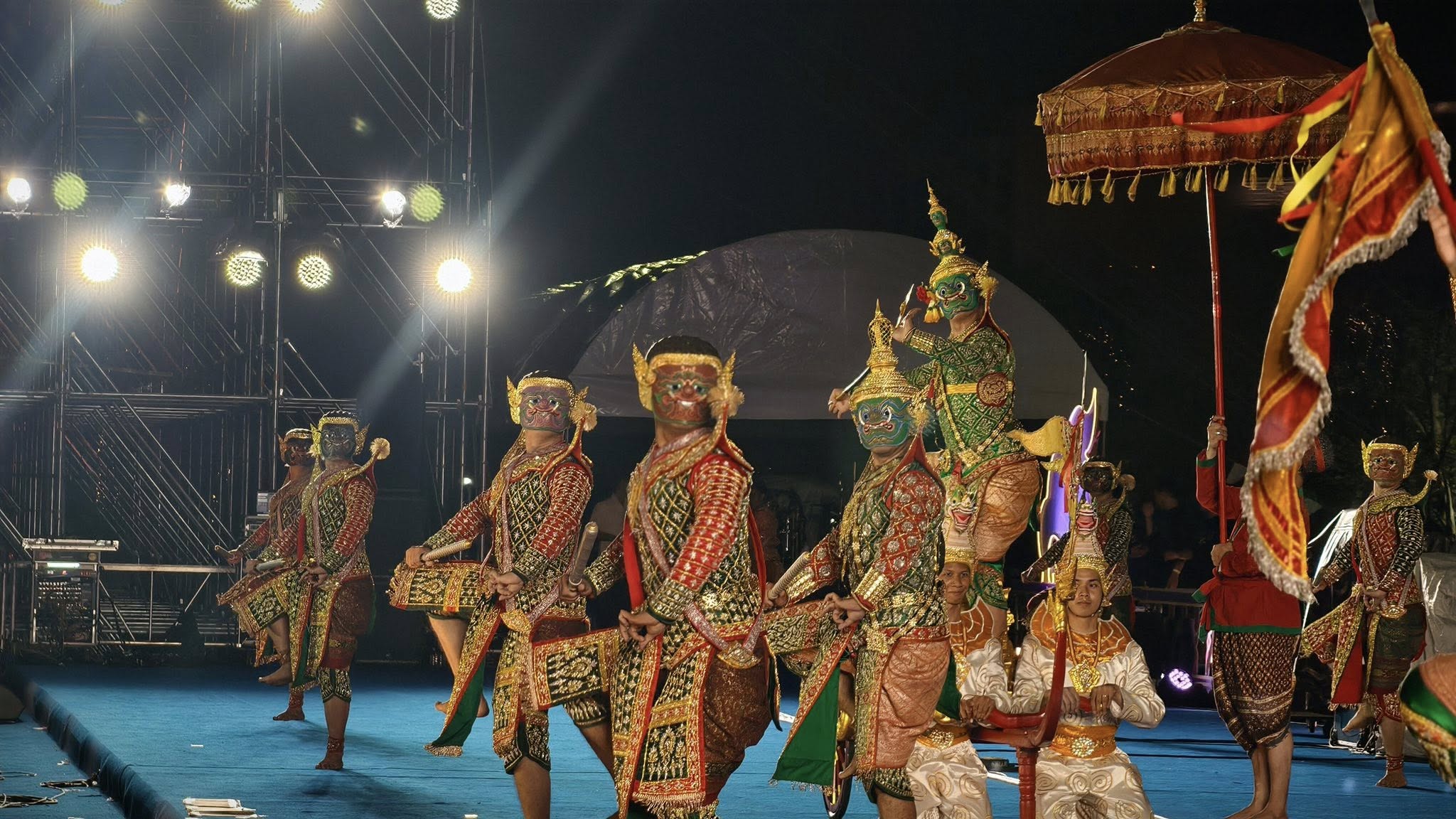 ภาพการแสดงโขน เรื่องรามเกียรติ์ ชุดรามยั้งยุทธนามหาสงกรานต์ เนื่องในงาน Maha Songkran World Water Festival 2025 เย็นทั่วหล้า มหาสงกรานต์ ณ เวทีกลาง บริเวณท้องสนามหลวง ในวันที่ ๑๑ เมษายน ๒๕๖๘
