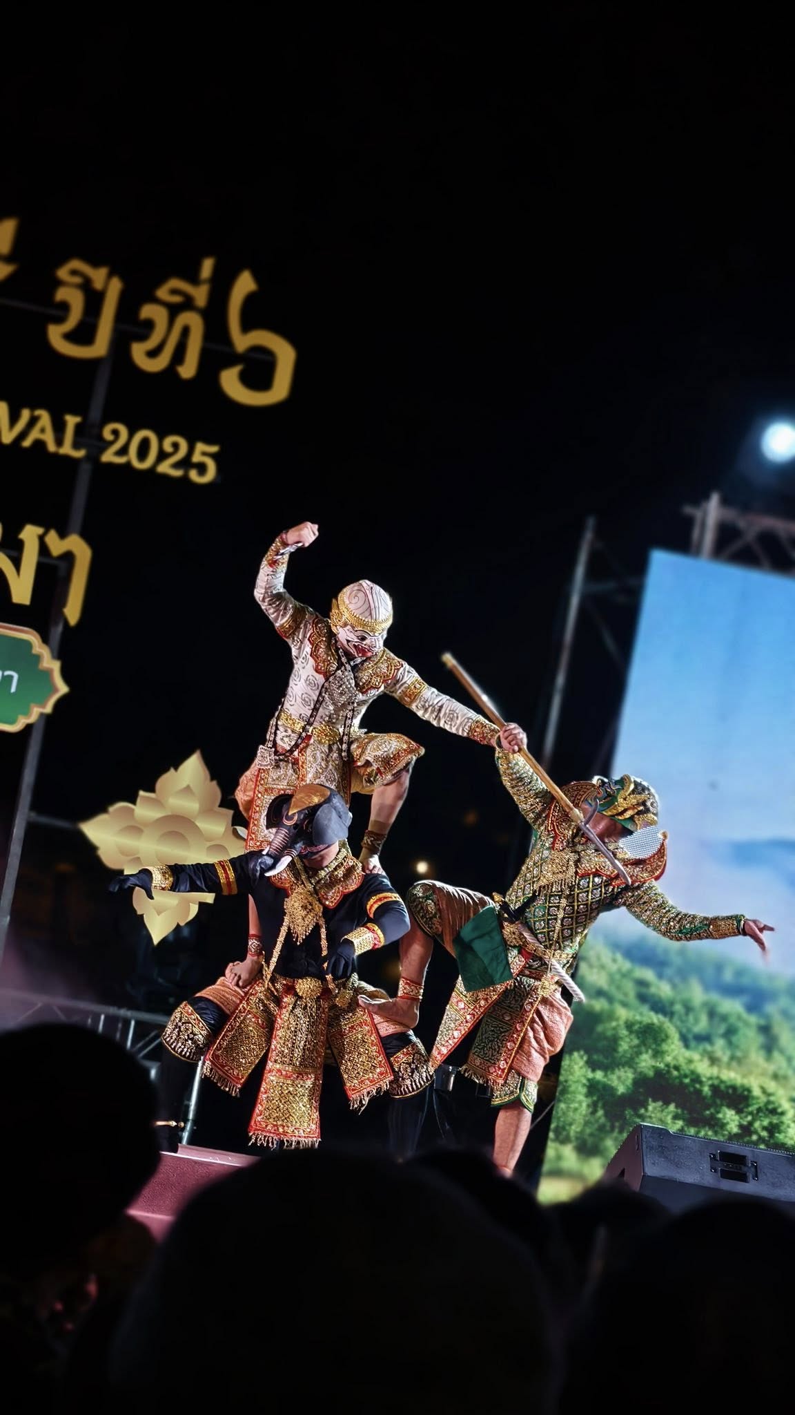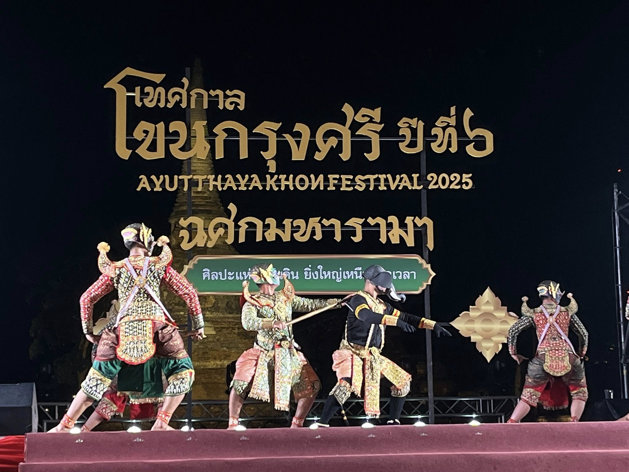 ภาพการแสดงโขน เรื่องรามเกียรติ์ ชุดศึกอสุรกำปั่น เนื่องในกิจกรรมการท่องเที่ยว "เทศกาลโขนกรุงศรี ปีที่ 6" ฉศกมหารามา ณ ลานหลังวัดมหาธาตุ อุทยานประวัติศาสตร์พระนครศรีอยุธยา จังหวัดพระนครศรีอยุธยา ในวันที่ ๒๖ เมษายน ๒๕๖๘