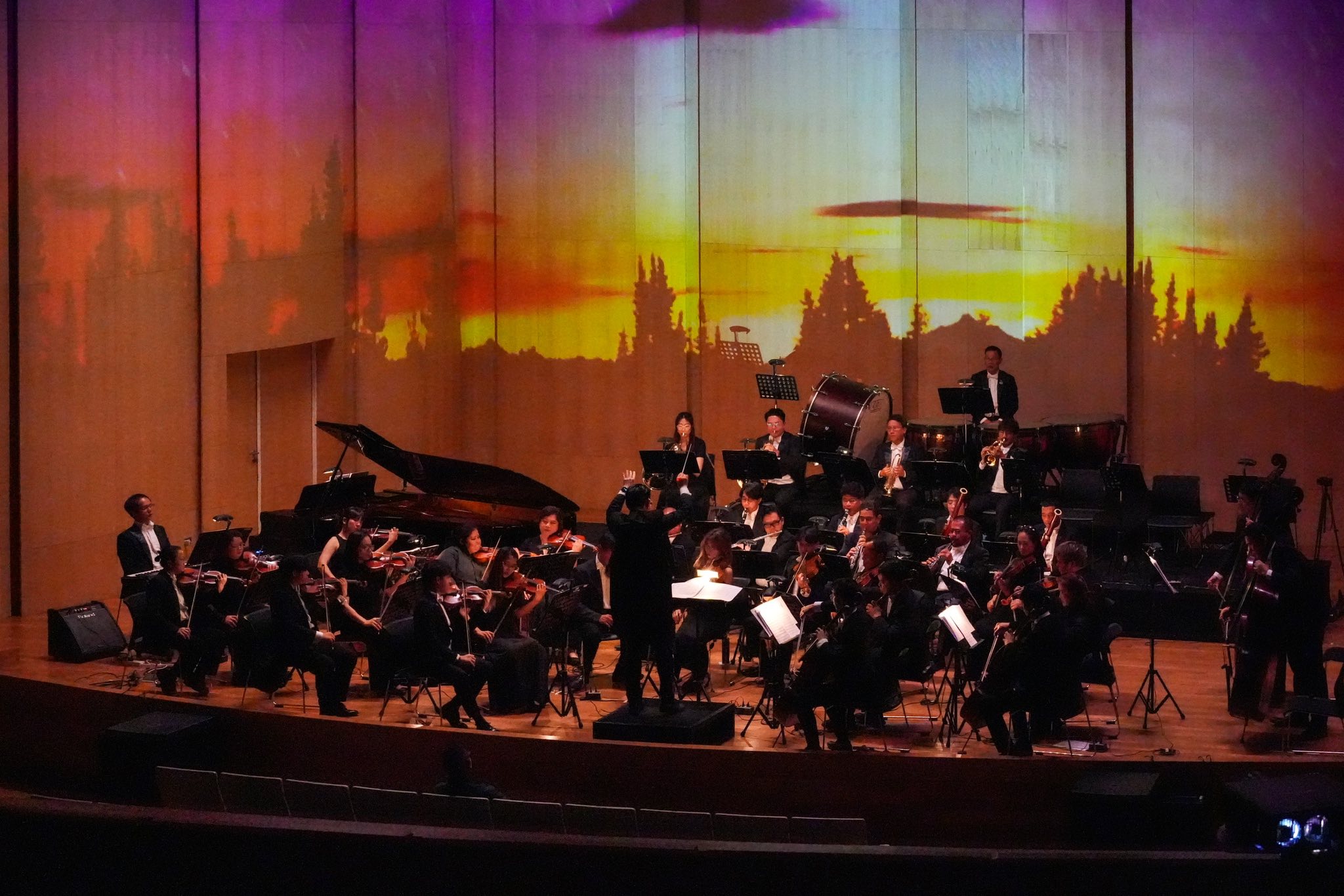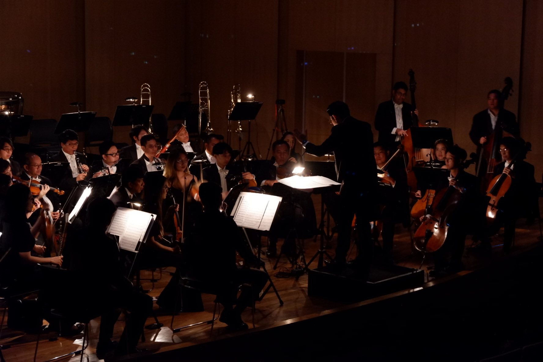 ภาพการบรรเลงดนตรีสากล เนื่องในการจัดงานออร์เคสตรา “Symphony Under the Star” ณ หอประชุมมหาวิทยาลัยศิลปากร วังท่าพระ ในวันพุธที่ ๑๔ พฤษภาคม ๒๕๖๘